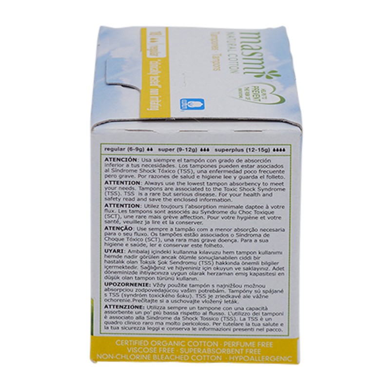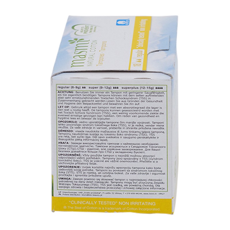 Masmi BIO Tampon Classic aus 100% Bio-Baumwolle –Baumwolle ist atmungsaktiv und leitet die Flüssigkeit wirksam ins Innere, garantiert ein optimales Feuchtigkeitsmilieu, welches den Wasserentzug reduziert und das natürliche Säure-Gleichgewicht der Schleimhaut nicht beeinflusst