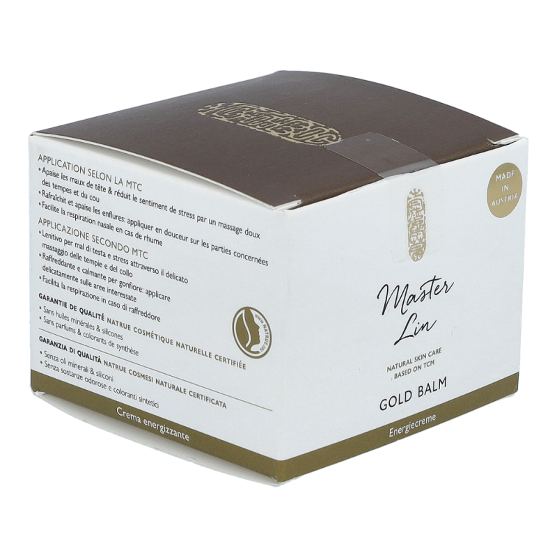 Master Lin Gold Balsam Dose ist Ihr täglicher, kraftvoller Begleiter und Unterstützer bei Müdigkeit, Stress, Verspannung. Die Energiecreme dient außerdem als pflegende Unterstützung bei Gelenksproblemen. Kraftvolle Wirkstoffe aus der Natur begleiten bei „Störungen“ aller Art, wie Stress und plötzliche Müdigkeit, Neigung zu Spannungskopfschmerz bis hin zur Regeneration bei verschiedenen Gelenksschmerzen.