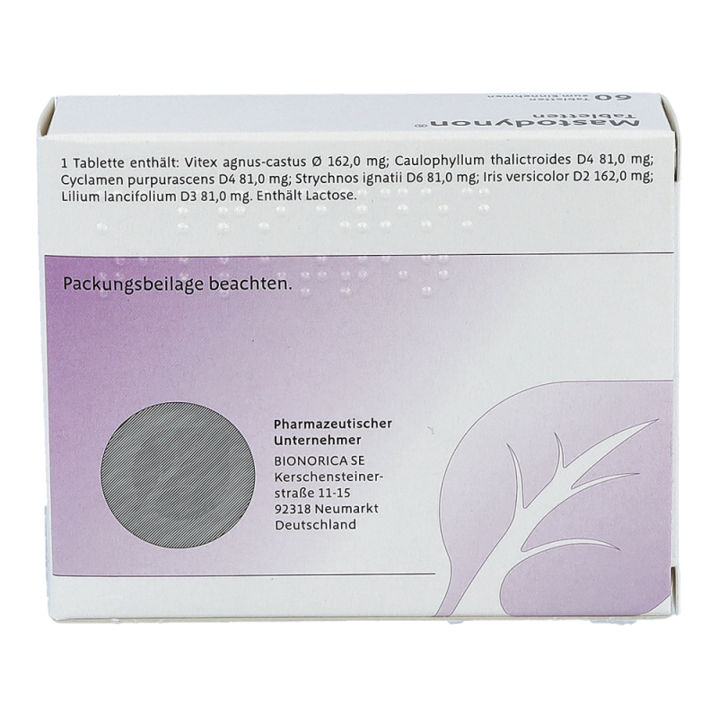 Mastodynon® Tabletten sind ein homöopathisches Arzneimittel für die Frauenheilkunde. Die Anwendungsgebiete leiten sich von den homöopathischen Arzneimittelbildern ab. Dazu gehören: Beschwerden vor der Periodenblutung, wie z.B. Spannungs- und Schwellungsgefühl in den Brüsten (Mastodynie) sowie Beschwerden während der Periodenblutung und bei unregelmäßigen Periodenblutungen (Zyklusstörungen). Bei anhaltenden, unklaren oder wiederkehrenden Beschwerden sollte ein/e Arzt/Ärztin aufgesucht werden, da es sich um eine Erkrankung handeln kann, die einer ärztlichen Behandlung bedarf.