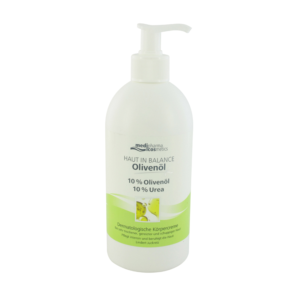 Medipharma Cosmetics Olivenöl Haut in Balance Körpercreme ist eine einzigartige Wirkstoffkombination aus Olivenöl und Urea, welche trockene, schuppige Haut intensiv mit Feuchtigkeit versorgt. Panthenol und Olivenblattextrakt pflegen nachhaltig. Die Öl-in-Wasser Körpercreme entspannt die gereizte Haut.