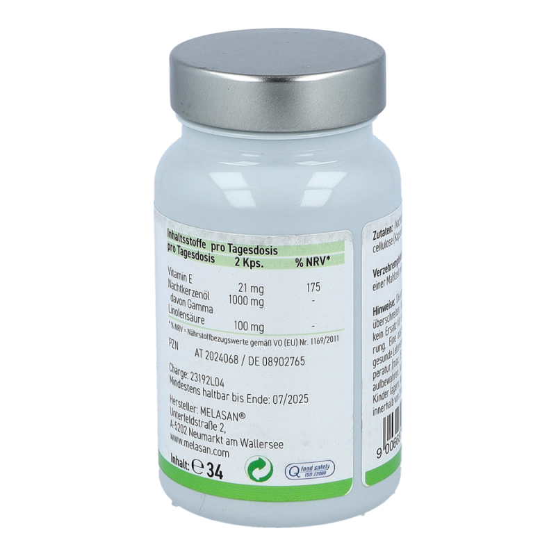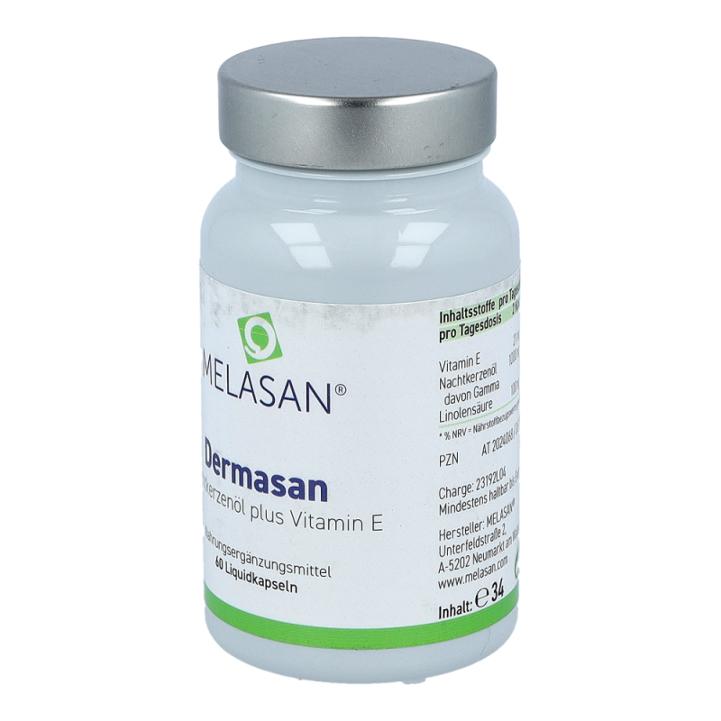 Melasan Dermasan Nachtkerzen Öl Kapseln 60 Stk. mit der seltenen Gamma-Linolensäure und Vitamin E können das Erscheinungsbild der Haut nachhaltig verbessern. Das aus den Samen der nordamerikanischen Nachtkerze (Oenothera biennis) kaltgepresste Öl zeichnet sich durch seine besondere Fettsäurezusammensetzung aus. Dieses Produkt erhalten Sie in den Packungsgrößen 60 Stk. und 180 Stk..