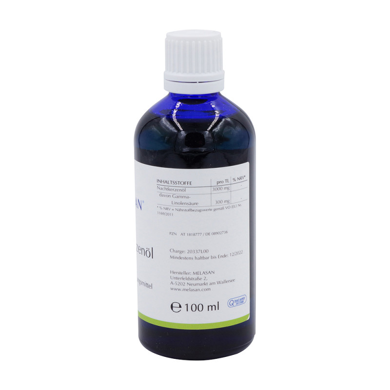 Melasan Nachtkerzen Öl 100 ml kann sowohl äußerlich, pur oder als Salbe, als auch innerlich als Nahrungsergänzungsmittel oder in der Küche eingesetzt werden. Das Öl der Nachtkerze ist sehr reich an mehrfach ungesättigten Fettsäuren. Diese Fettsäuren sind essentiell und können vom Körper nicht selbst hergestellt werden.