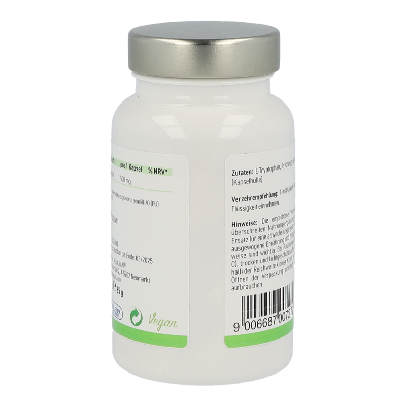 Tryptophan Kapseln 500an – Die Aminosäure L-Tryptophan ist lebensnotwendig und muss ausreichend mit der Nahrung zugeführt werden