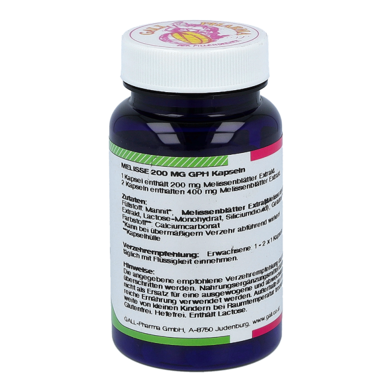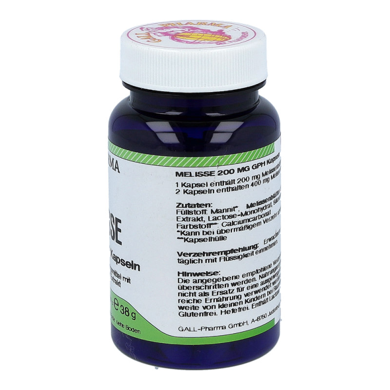 Gall Pharma Melisse 200 mg Kapseln enthalten 200 mg Melissenextrakt in einer Hartgelatinekapsel. Reizüberflutung von außen und Stress äußern sich vielfach in einem beeinträchtigten Schlafrhythmus und Unruhezuständen. Auch Frauen im Wechsel leiden sehr oft unter diesen Symptomen. Durch die beruhigende Eigenschaft der Melisse kann diese sowohl bei Einschlaf- als auch bei Durchschlafstörungen Abhilfe schaffen, allgemeine Erregungszustände lindern und somit zu einer Verbesserung des Allgemeinbefindens beitragen. Daneben hat die Melisse durch ihre gallentreibenden und krampflösenden Eigenschaften einen positiven Einfluss auf die Verdauung und wird vielfach bei Magen-Darm-Störungen angewendet.