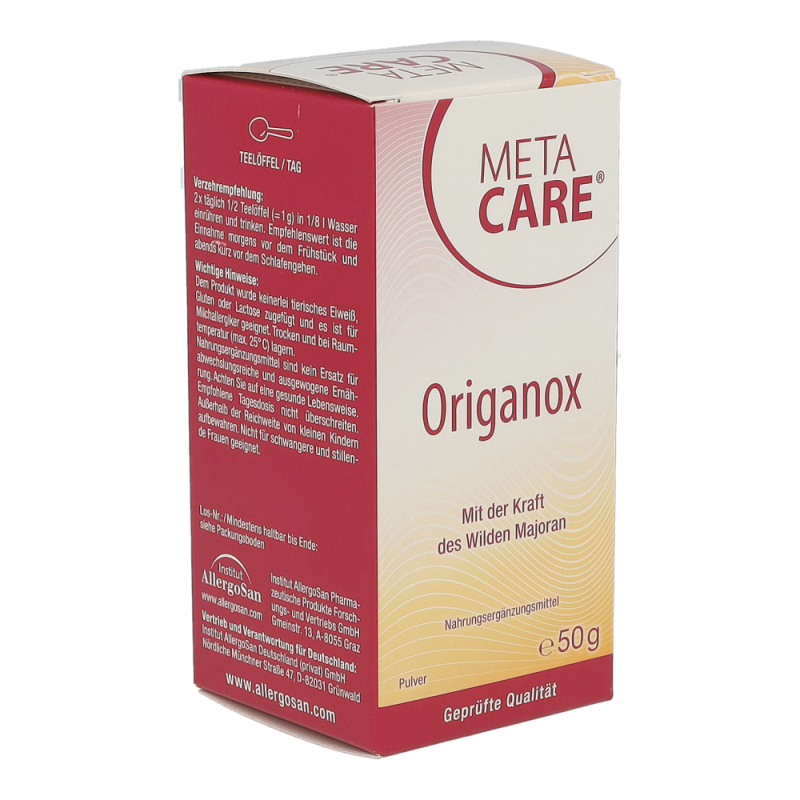 Metacare Origanox Pulver eignet sich besonders für Sportler, Raucher und ältere Menschen sowie speziell für jene, die das Gefühl haben, nicht über ausreichend „Luft“ zu verfügen. Origanox ist das wässrige Extrakt aus dem wilden Majoran, der speziell den Abbau von Säuren über die Atemluft fördert.