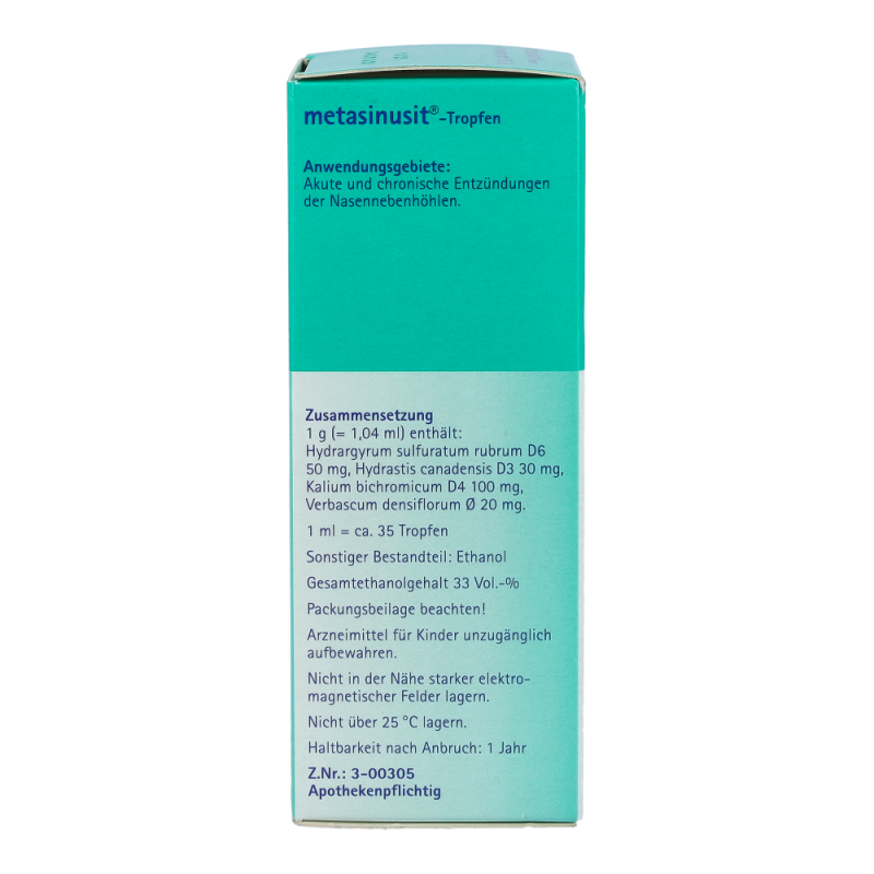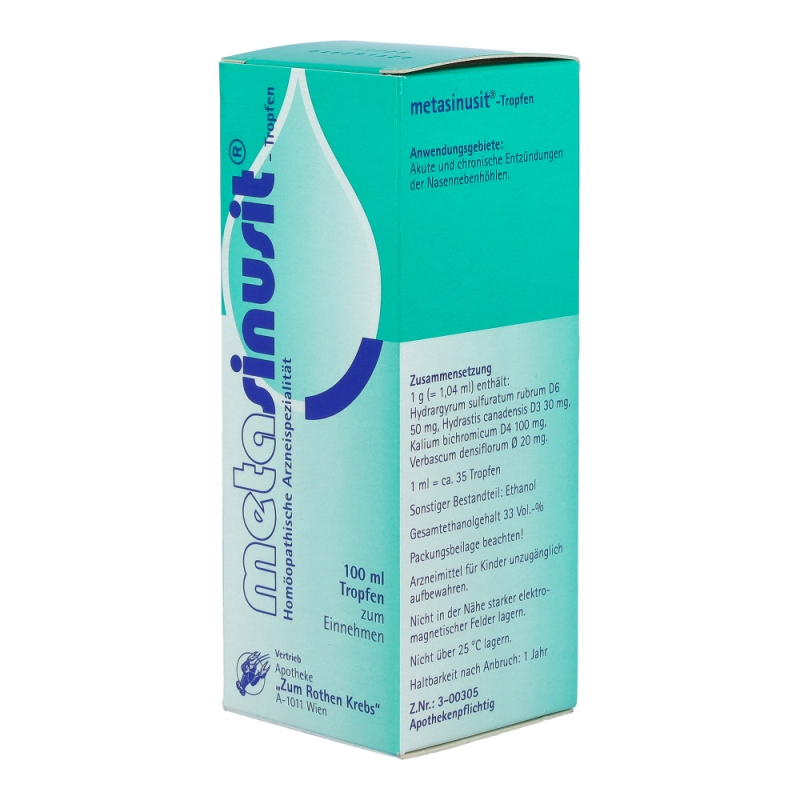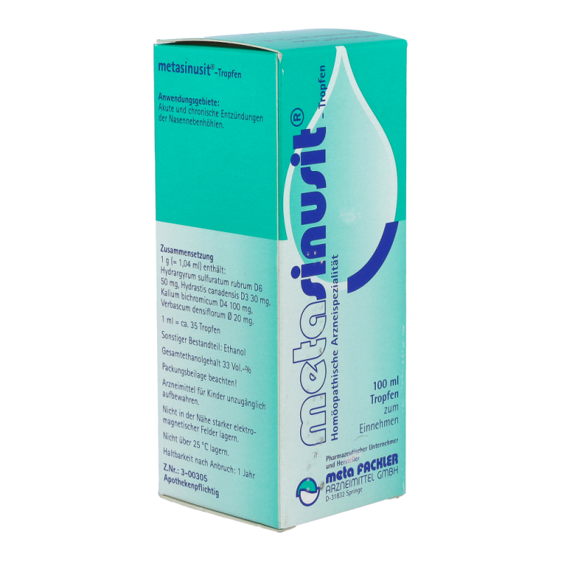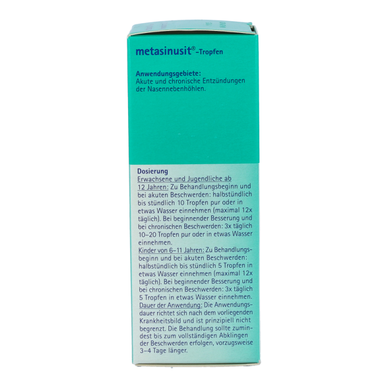 Metasinusit Tropfen sind ein homöopathisches Arzneimittel. Die Anwendungsgebiete leiten sich von den homöopathischen Arzneimittelbildern ab. Dazu gehören etwa akute und chronische Entzündungen der Nasennebenhöhlen.