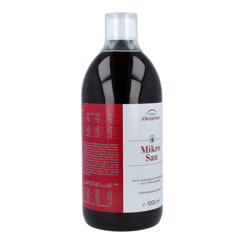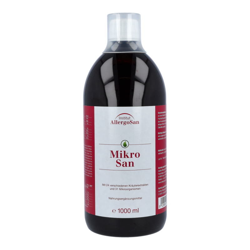 Mikrosan Kräuterkonzentrat reinigt den Darm auf sanfte Weise und verhilft zu seiner gesunden Balance. Durch falsche Ernährung, Stress, Einnahme von Medikamenten und mangelnde Bewegung steht unser Magen-Darmtrakt ständig unter Beschuss. Mikroorganismen sorgen für eine normale Darmfunktion und 24 verschiedenste Pflanzen- und Kräuterarten wirken verdauungsfördernd, entblähend und lindern Beschwerden.
