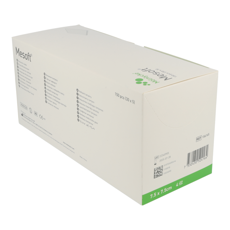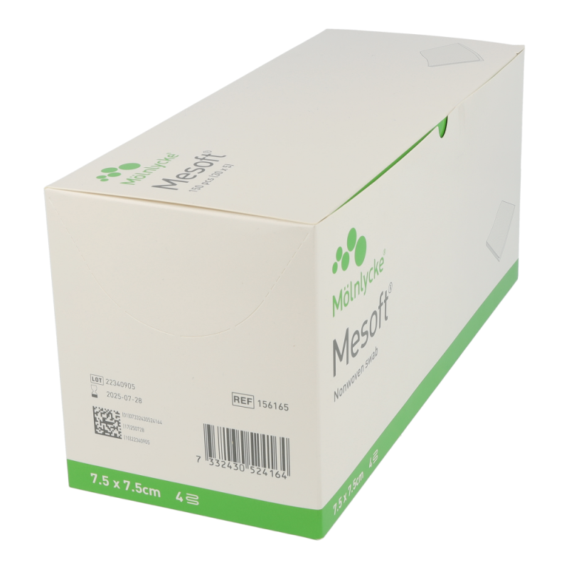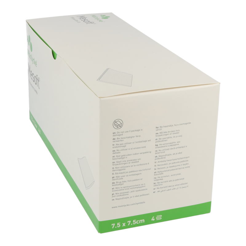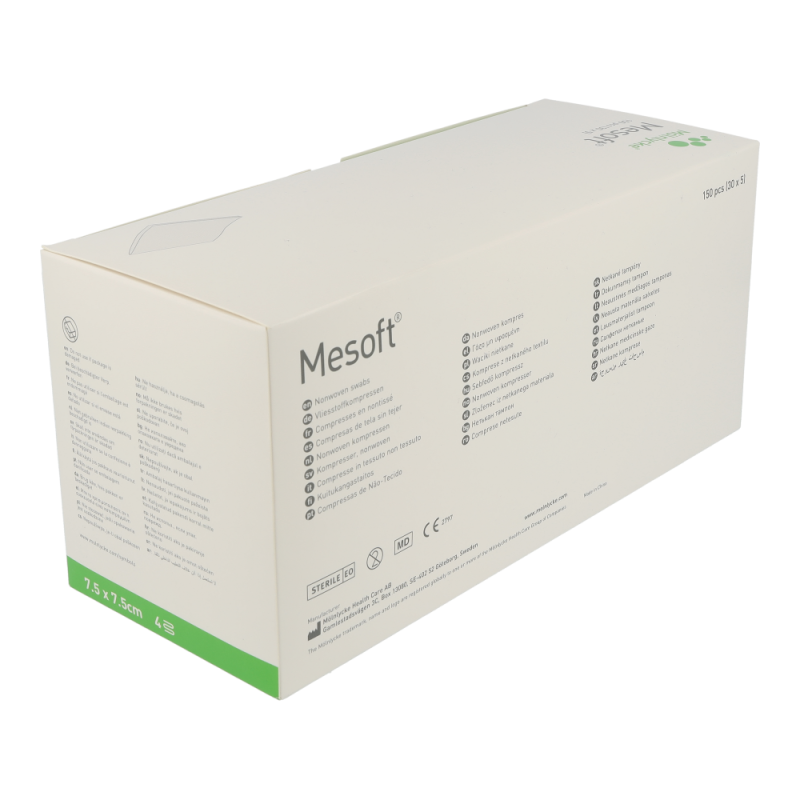 Mölnlycke Mesoft Vlieskompressen 7,5 x 7,5 cm 30×5 Stk. 150 Stk. zeichnen sich vor allem durch überlegene Absoptionskapazität, Weichheit und geringe Faserfreisetzung aus. Eine geringe Partikelfreisetzung, Wirtschaftlichkeit als kostengünstige Alternativen zu den herkömmlichen Baumwollgazeprodukten, Formbeständigkeit auch im Nasszustand und Weicheit zählen zu den Vorteilen von Mesosoft