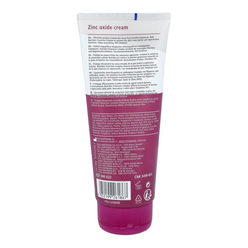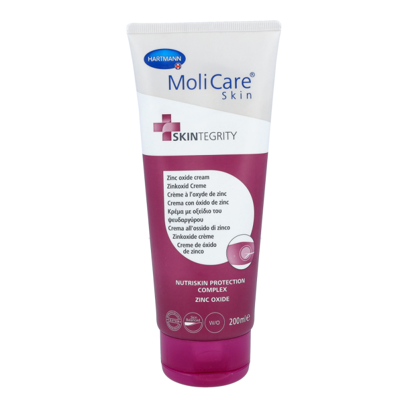 MoliCare Skin Zinkoxid Creme 200 ml enthält neben Zink auch Kreation, essentielle Fettsäuren, Aminosäuren und Mandelöl. Sie unterstützt den hauteigenen Schutzmechanismus und neutralisiert Gerüche.