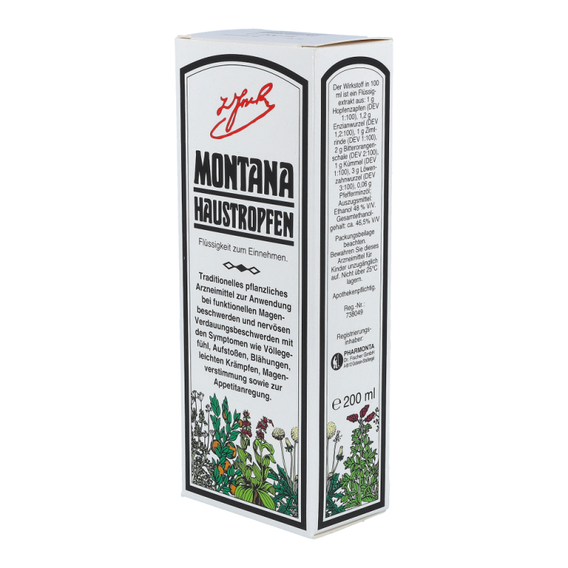 Montana ist ein alt bewährtes Hausmittel bei einer Vielzahl von Magen-Darmbeschwerden wie Verdauungsproblemen, Verstopfung, Appetitlosigkeit, Blähungen oder Übelkeit.