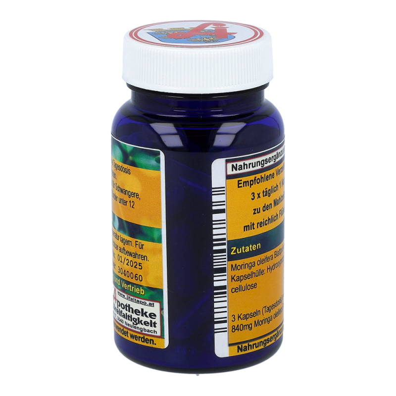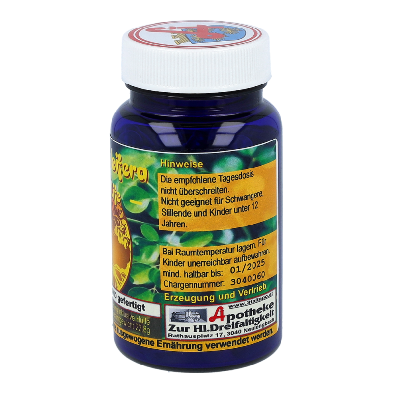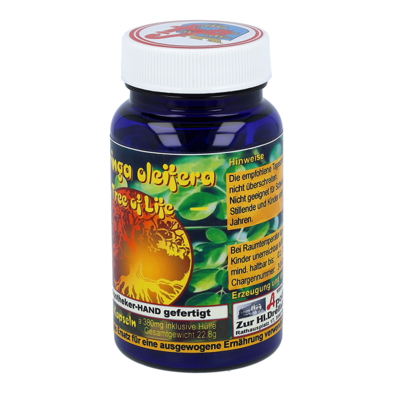 Moringa Oleifera Kapseln sind als Nahrungsergänzungsmittel zur Zeit in aller Munde, denn Moringa gilt als DIE natürliche Vitalstoffquelle. Moringa wird für seinen hohen Anteil an Vitamin A, Vitamin C, Kalzium, Eiweiß, Kalium, natürlichem Chlorophyll und ungesättigten Fettsäuren geschätzt und wird deshalb oft als „Wunderpflanze“ bezeichnet.