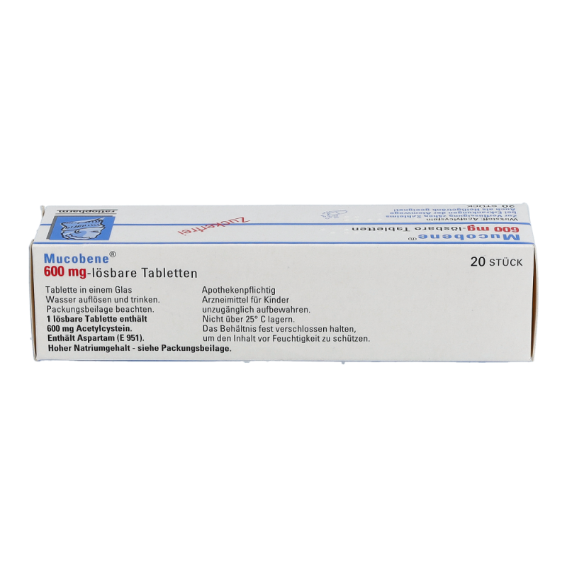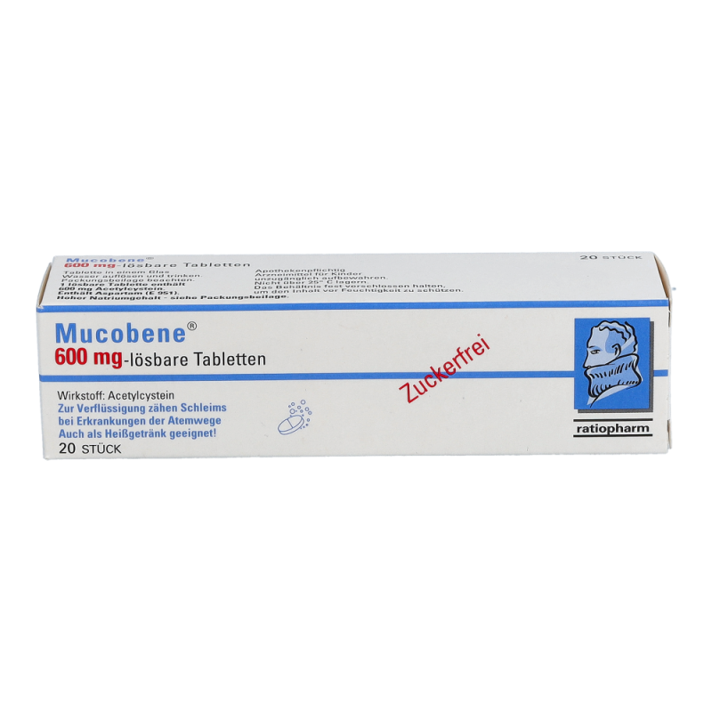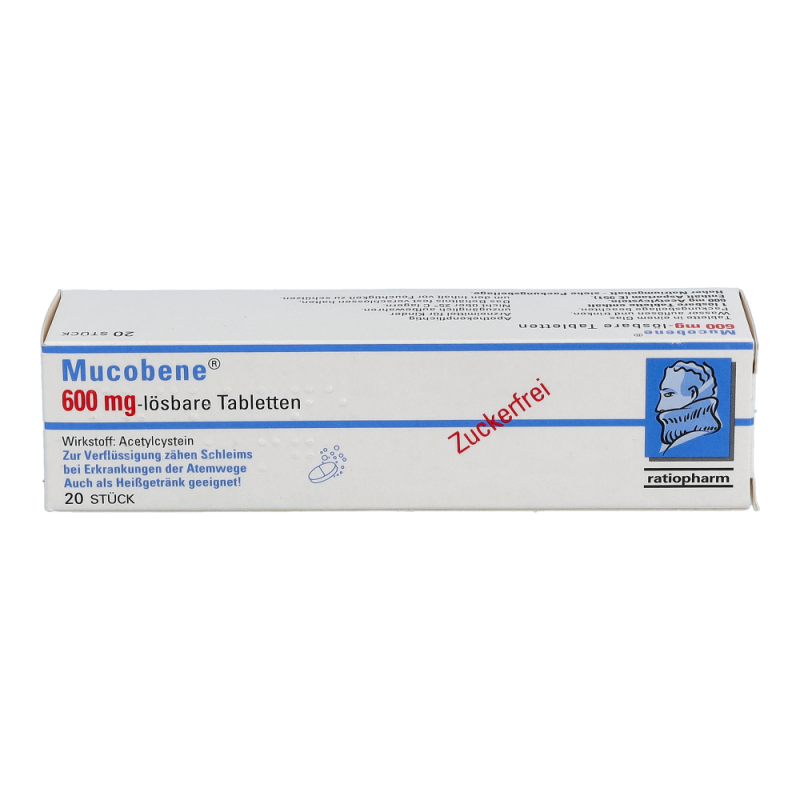 Mucobene 600 mg lösbare Tabletten eignen sich als Zusatztherapie zusammen mit reichlich Flüssigkeit, zur Schleimlösung und zum erleichterten Abhusten bei Atemwegserkrankungen (Lunge und Bronchien).