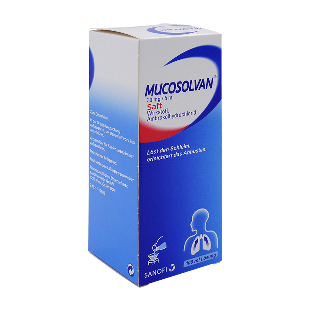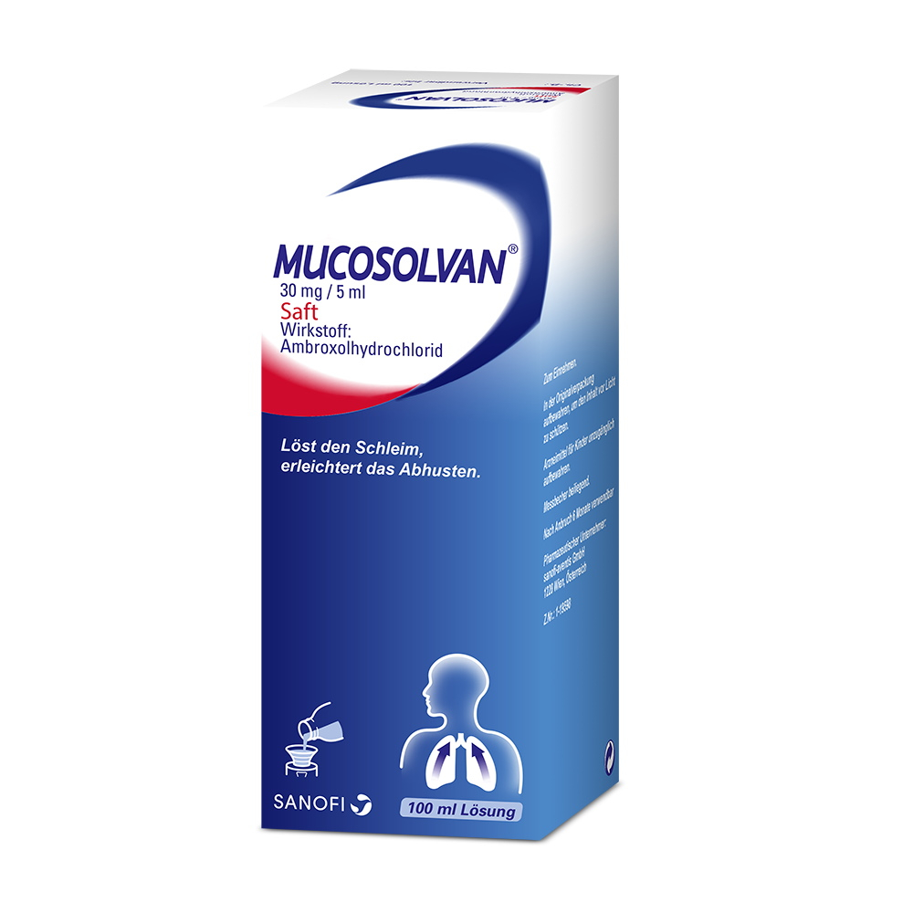 Ambroxolhydrochlorid, der Wirkstoff von Mucosolvan, löst gestautes und zäh haftendes Sekret von der Bronchialwand und erleichtert das Abhusten. Mucosolvan 30 mg / 5 ml Saft wird zusammen mit reichlich Flüssigkeit angewendet zur schleimlösenden Behandlung bei akuten und chronischen Erkrankungen der Bronchien und der Lunge.