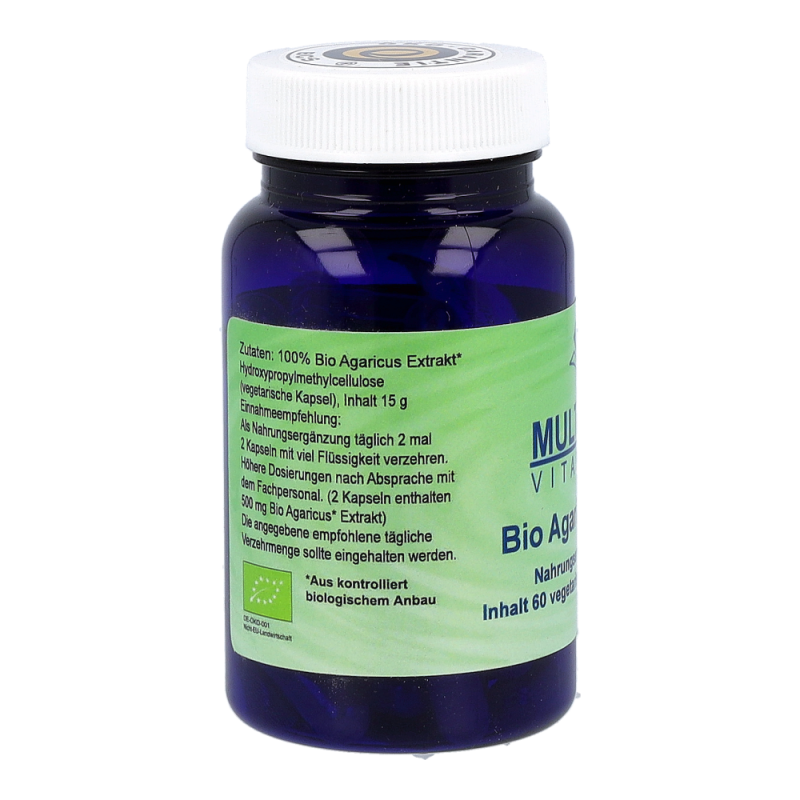 Multinova Agaricus Kapseln punkten neben ihrem hohen Anteil an Vitaminen durch ihre immunmodulierenden, antiallergischen, antidiabetischen, entzündungshemmenden und antiviralen Wirkungen. Das Produkt enthält teilweise biologische Inhaltsstoffe.