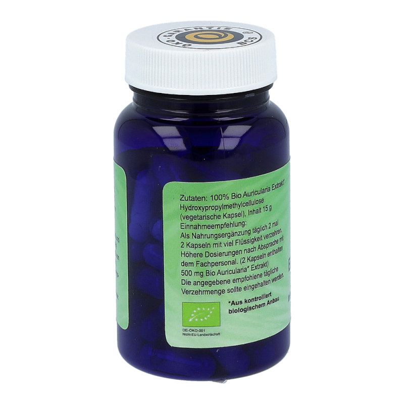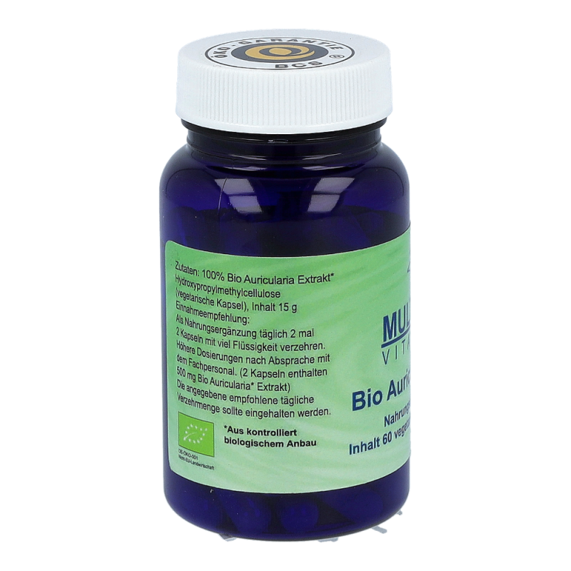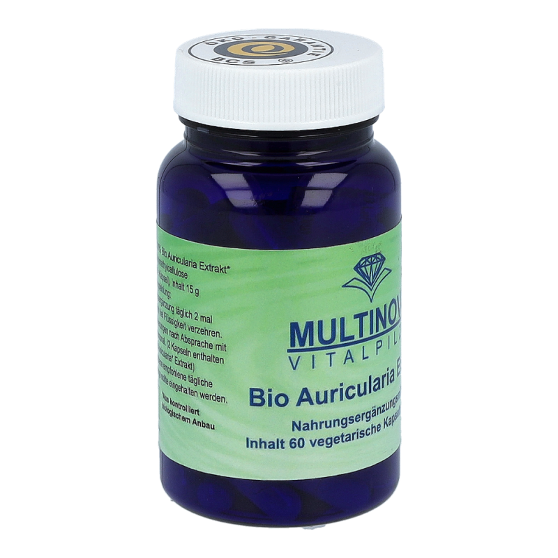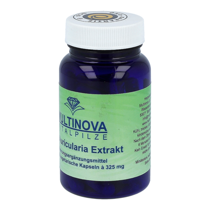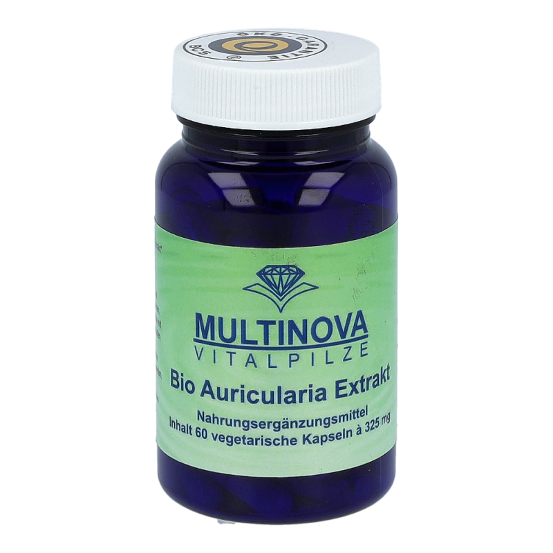 Multinova Auricularia Extrakt Kapseln gelten durch da in ihnen enthaltene Adenosin als blutverdünnend und regen die Durchblutung an. Somit wirken sie sich vitalisierend auf den ganzen Körper aus. Das Produkt enthält teilweise biologische Inhaltsstoffe.
