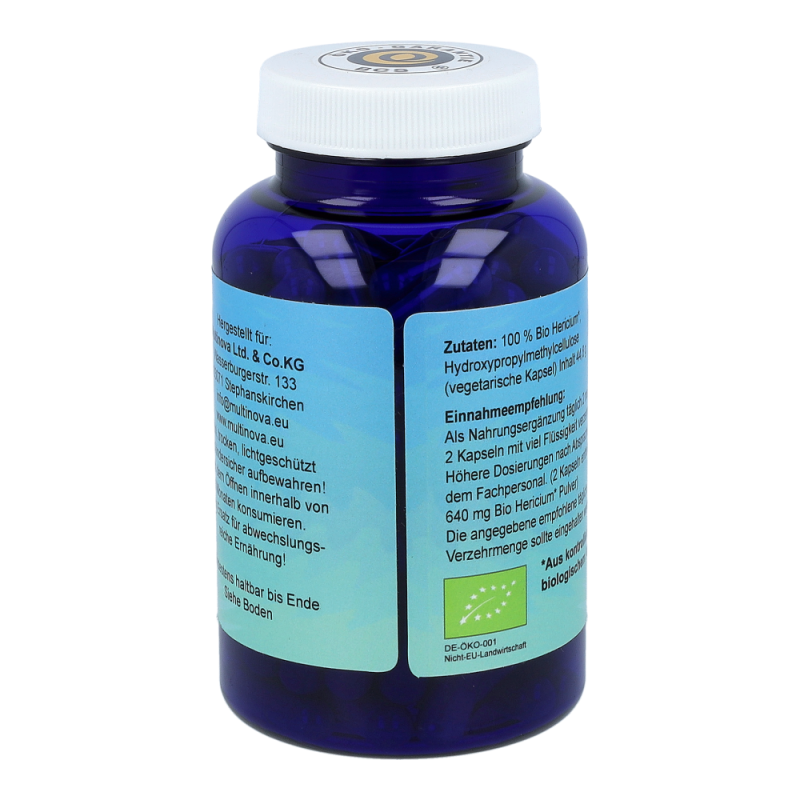Multinova Hericium Kapseln werden gerne bei Magenproblemen und Antriebslosigkeit eingesetzt. Sie stärken zudem den ganzen Körper und sorgen für ein angenehmes Körpergefühl. Das Produkt enthält teilweise biologische Inhaltsstoffe.