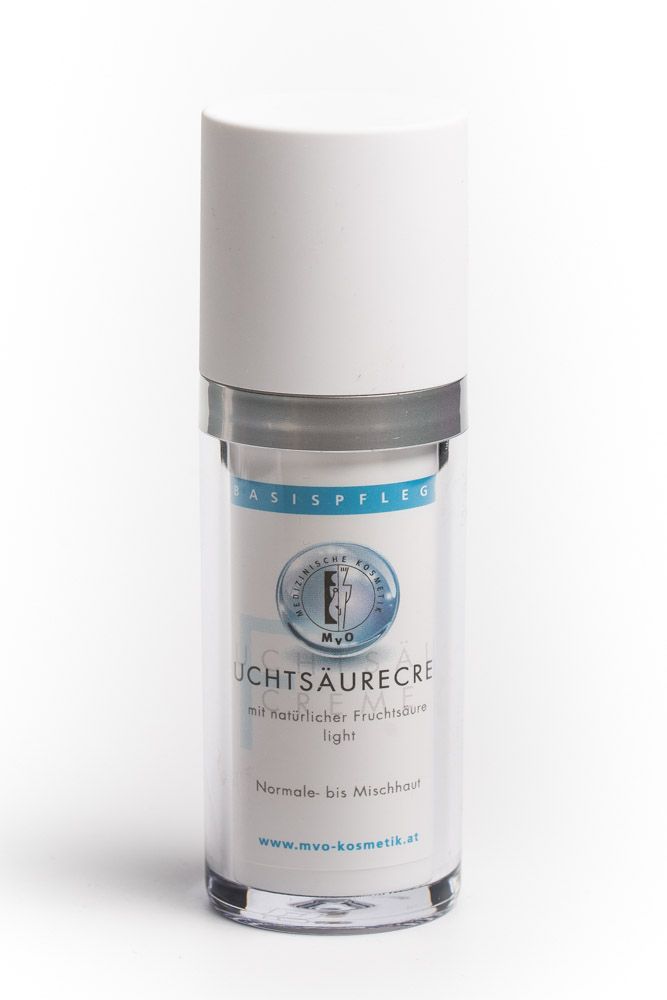 MvO Fruchtsäure Creme Aha Light regeneriert und stimuliert die Gesichtshaut, vermindert Fältchen und versorgt die Haut mit Feuchtigkeit. Arganöl und Squalane unterstützen die rückfettende und pflegende Wirkung.