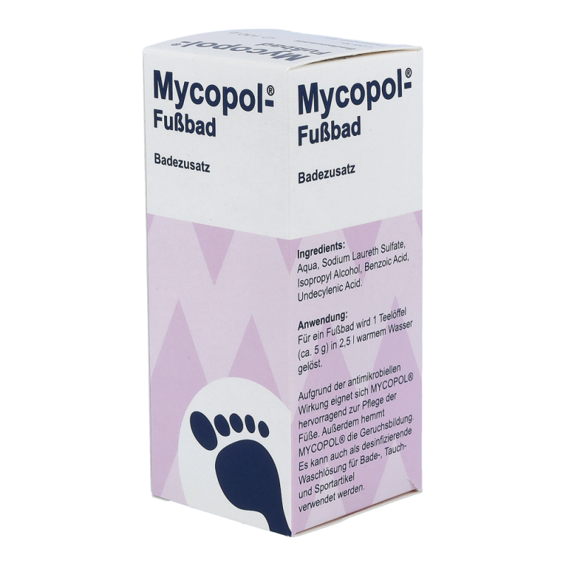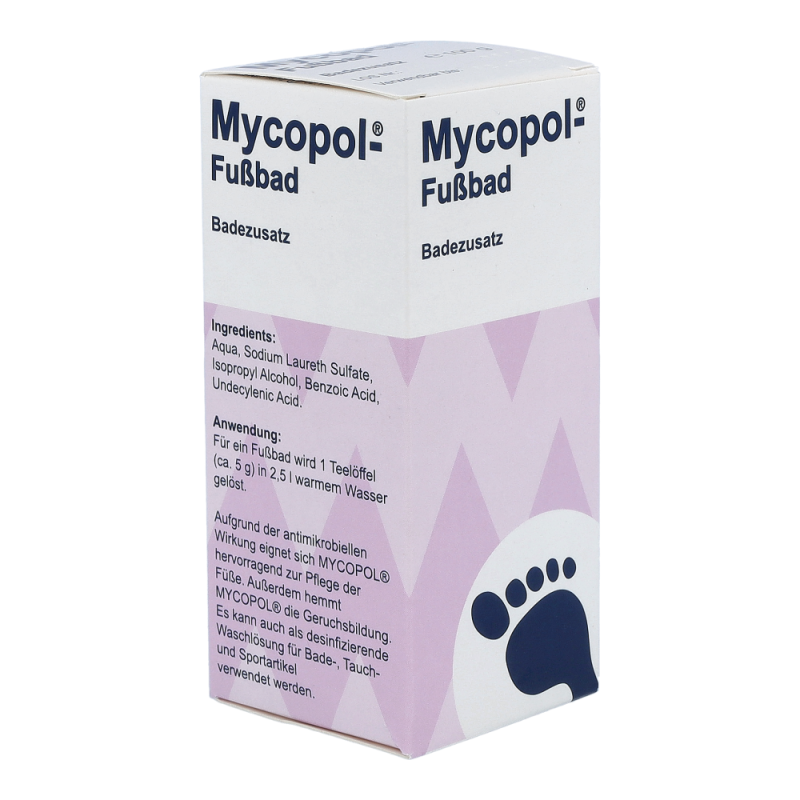 Mycopol Fußbad hemmt Geruchsbildung und kann für alle Bade-, Tauch- und Sporartikel als desinfizierende Waschlösung verwendet werden. Außerdem beugt das Fußbad Pilzerkrankungen der Füße vor.