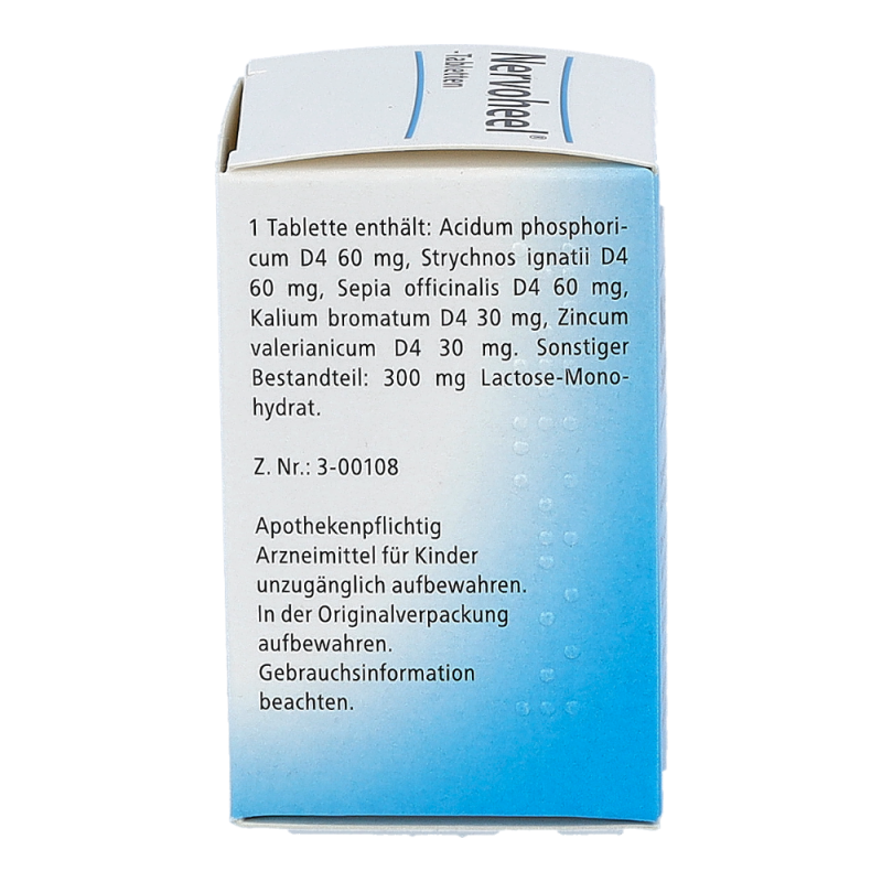 Die Wirkstoffe sind: Acidum phosphoricum D4 60 mg, Strychnos ignatii D4 60 mg, Sepia officinalis D4 60 mg, Kalium bromatum D4 30 mg, Zincum isovalerianicum D4 30 mg.