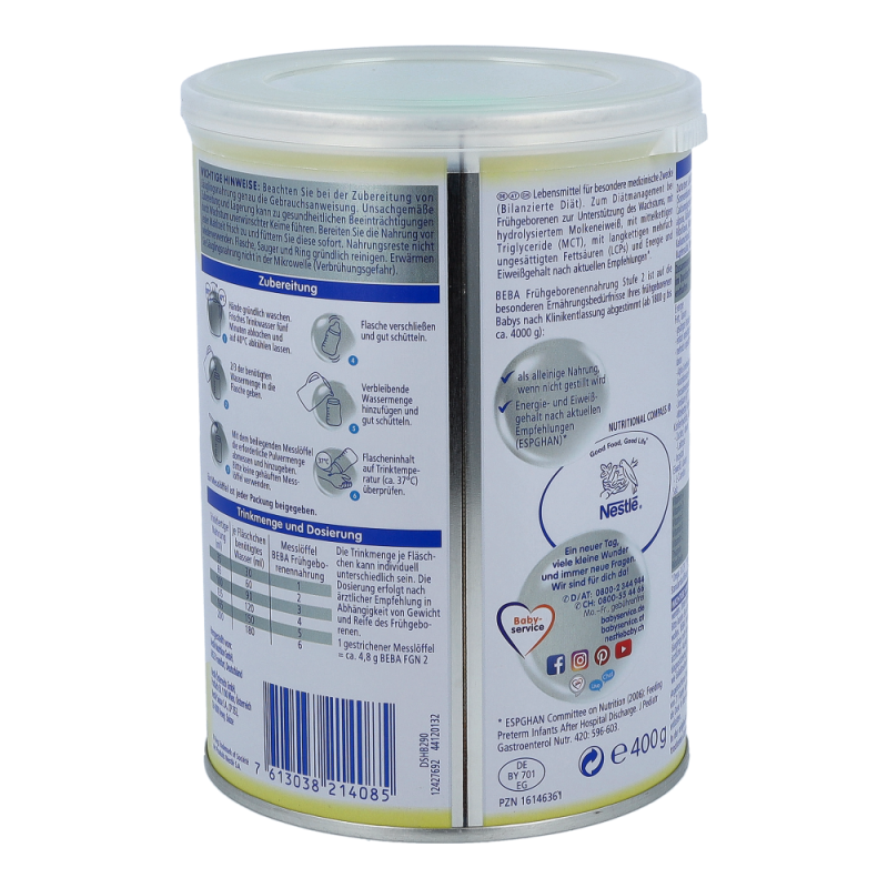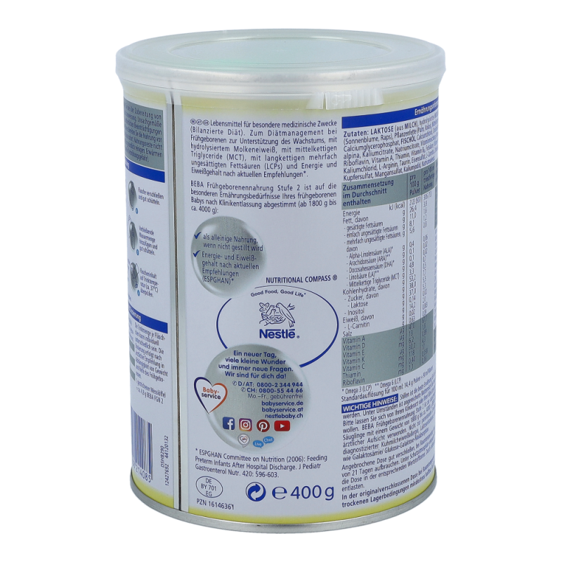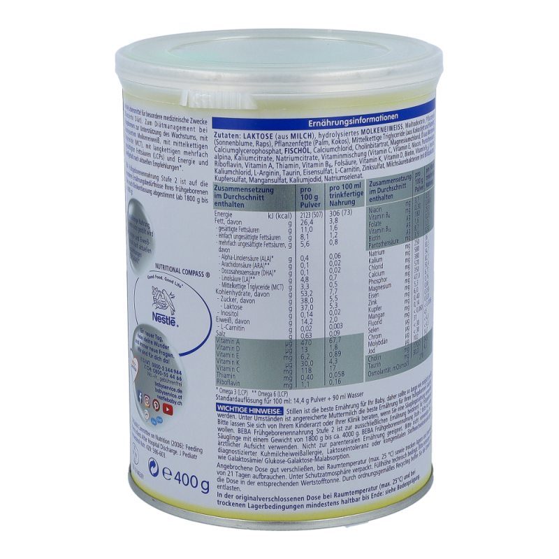 Mit Nestlé BEBA Frühgeborenennahrung Stufe 2 achten Sie auf eine altersgerechte Ernährung Ihres frühgeborenen Babys von 1800 g bis ca. 4000 und unterstützen seine Entwicklung.