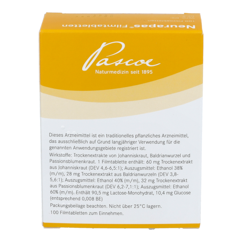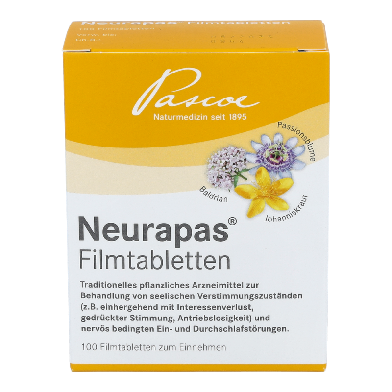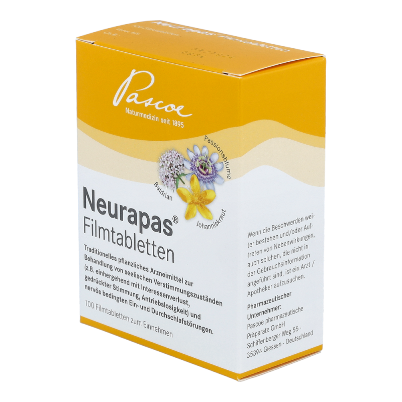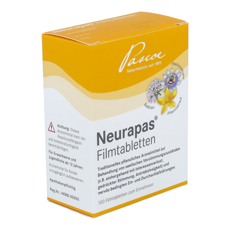 Neurapas® ist einpflanzliches Arzneimittel zur Behandlung von seelischen Verstimmungszuständen und nervös bedingten Ein- und Durchschlafstörungen. erhalten Sie dieses Mittel in den Packungsgrößen 60 und 100 Stück.