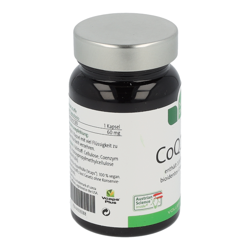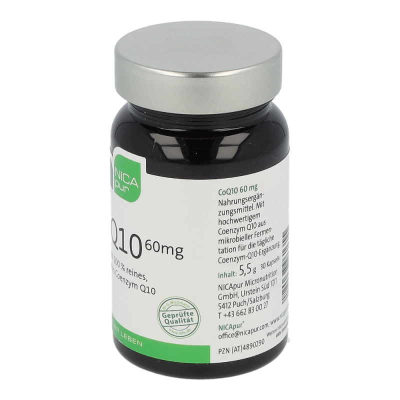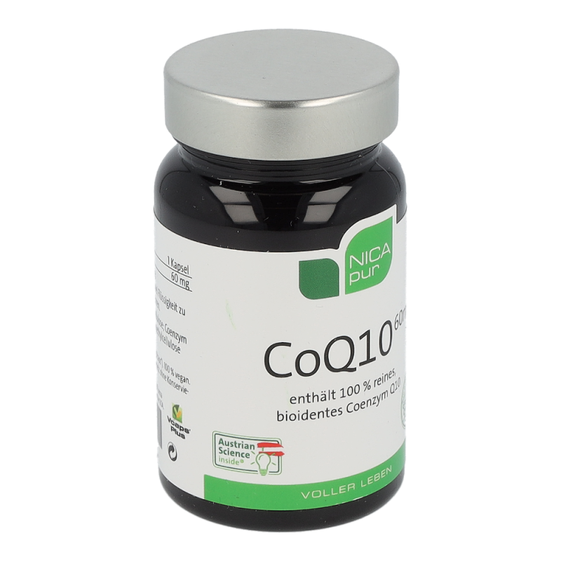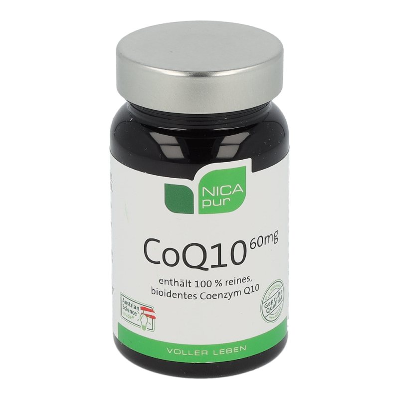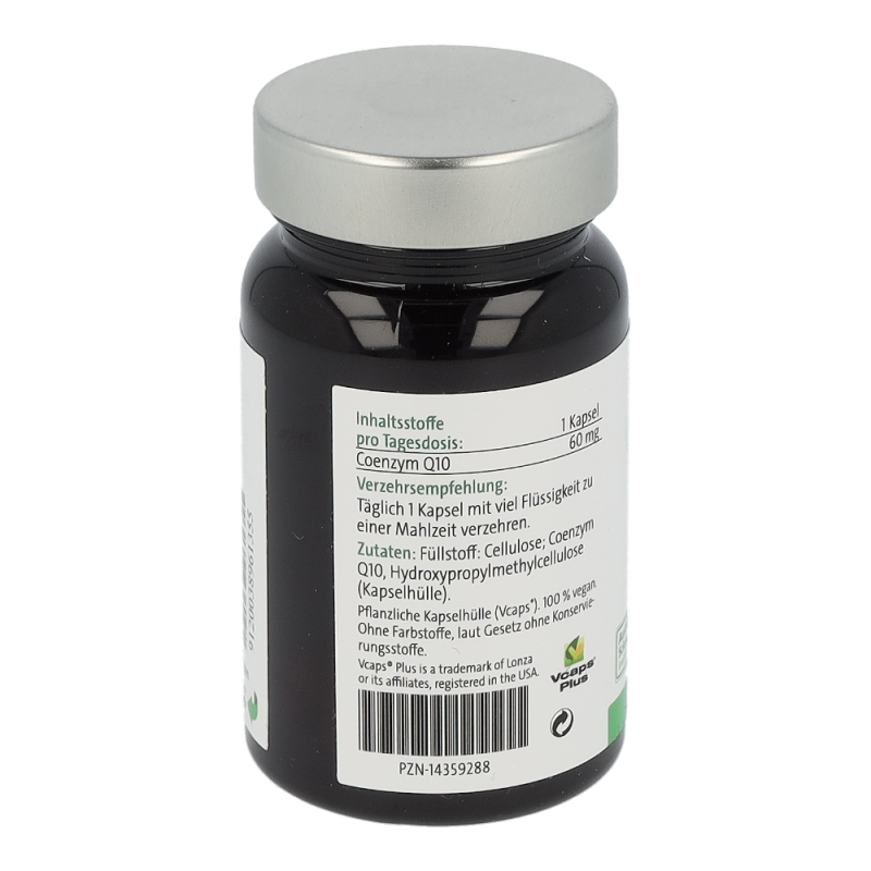 Coenzym Q10 60 mg ist ein Nahrungsergänzungsmittel mit hochdosiertem Coenzym Q10 aus Hefefermentation für die tägliche Coenzym-Q10-Ergänzung. Coenzym Q10 ist eine körpereigene Substanz, die zentral an der Elektronenübertragung in der mitochondrialen Atmungskette und damit an der Energiegewinnung beteiligt ist. Organe mit dem höchsten Energiebedarf weisen auch die höchste Q10-Konzentration auf, wie z.B. Herz, Gehirn, Leber, Niere und die Muskulatur. Weiters verläuft die körpereigene Bildung von Coenzym Q10 und Cholesterin über mehrere gemeinsame Zwischenprodukte, ehe der gemeinsame Syntheseweg voneinander abzweigt. Bei einer regelmäßigen Einnahme von Statinen wird eine Erhöhung der Coenzym-Q10-Zufuhr empfohlen.