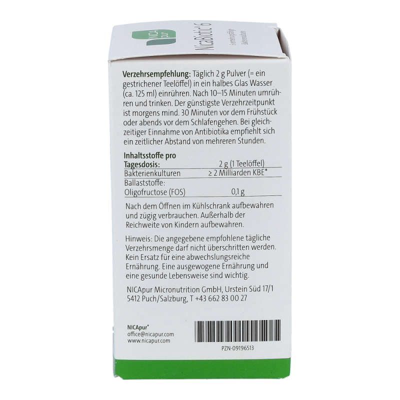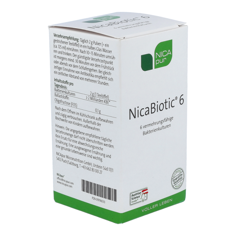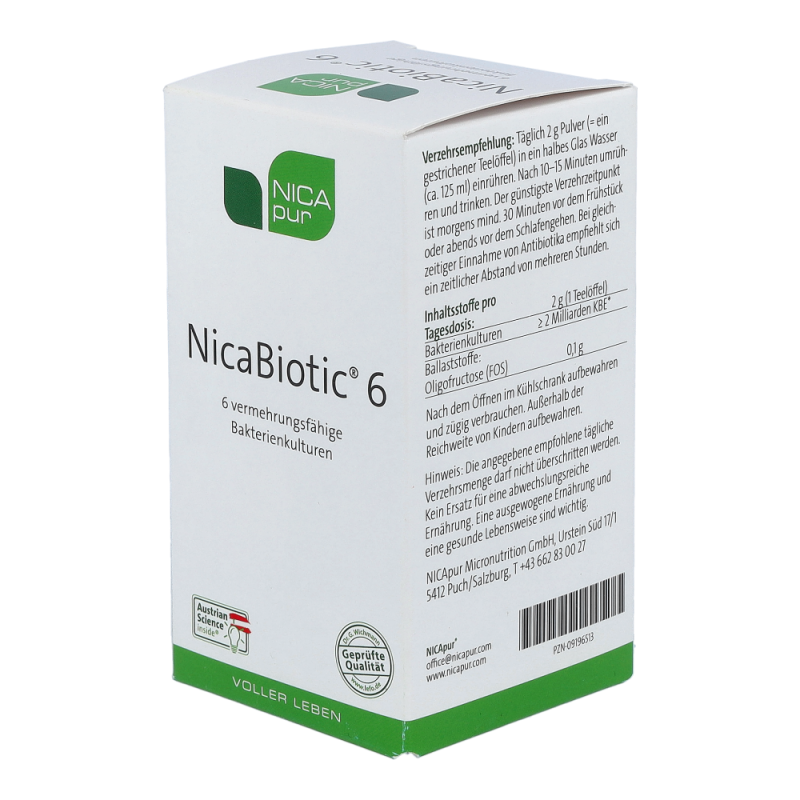Ein konzentriertes Nahrungsergänzungsmittel mit vermehrungsfähigen Bakterienkulturen in Pulverform. Mit 6 hochaktiven probiotischen Bakterienstämmen in hoher Konzentration (2 Milliarden pro Tagesdosis). Mit Ballaststoffen (FOS) aus der Chicoree-Wurzel, in Pulverform, deshalb besonders geeignet für Kinder – alle Produkte von Nicapur das ganze Jahr über stark preisgesenkt bestellen!