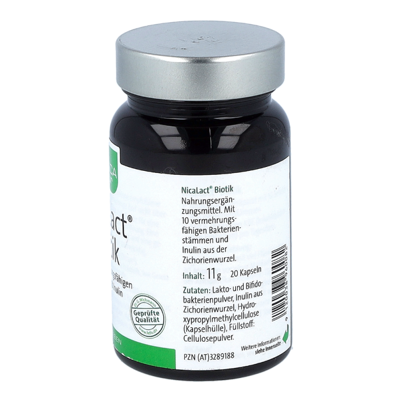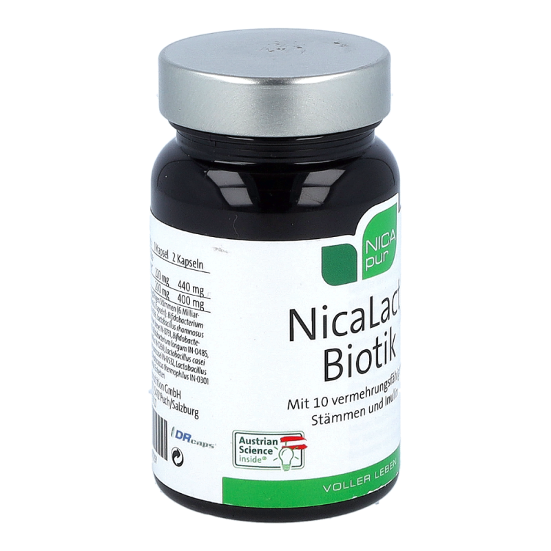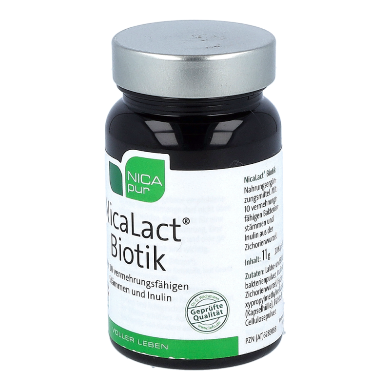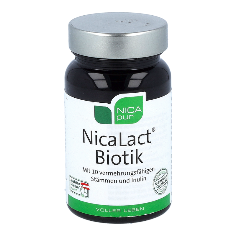 Nicalat Probiotic Kapseln sind ein Nahrungsergänzungsmittel von Nicapur mit 10 probiotischen Bakterienstämmen in hoher Konzentration und Inulin aus der Zichorienwurzel. Ein Multistamm-Präparat mit 10 definierten Bakterienstämmen, mit 6 Milliarden KBE (koloniebildenden Einheiten) pro Tagesdosis.
