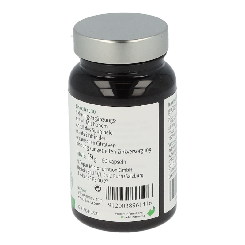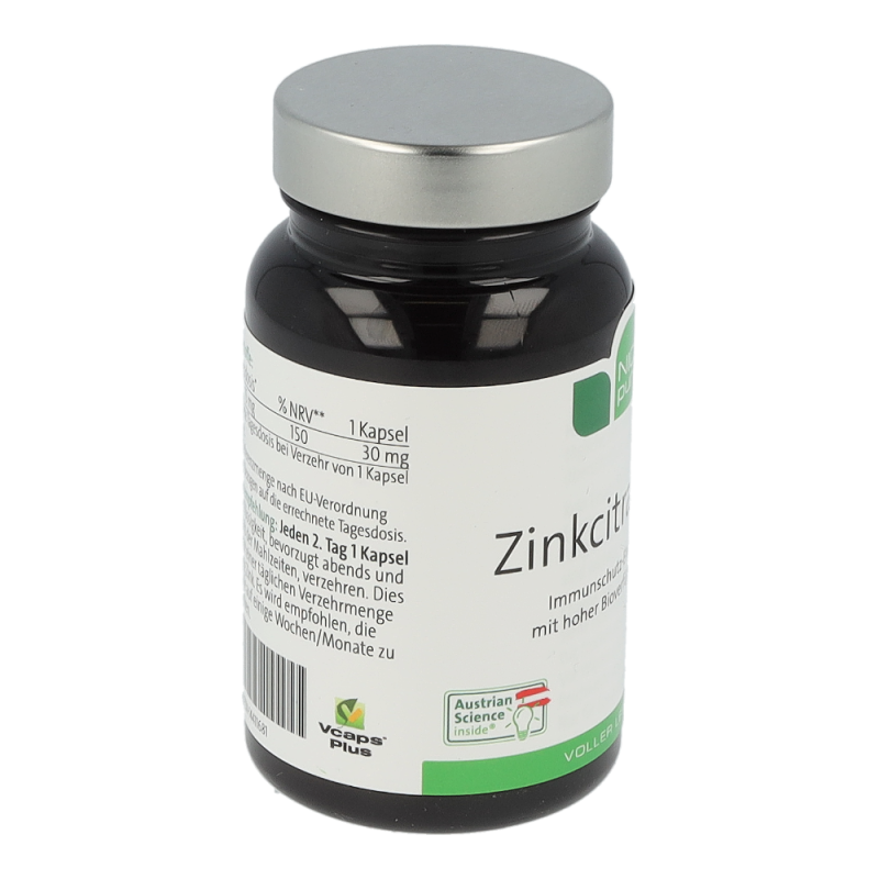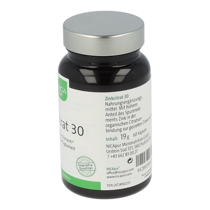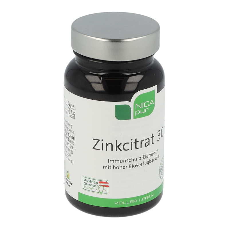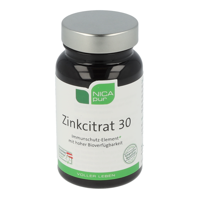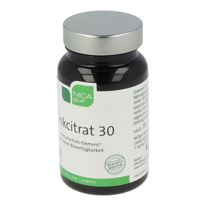 Zinkcitrat 30 ist ein Nahrungsergänzungsmittel mit einem hohem Anteil des Spurenelements Zink in der organischen Citratverbindung zur gezielten Zinkversorgung. Zink ist im Körper an vielen grundlegenden Prozessen beteiligt: an der Zellteilung, bei der DNA-Synthese, im Fett- und Eiweiß-Stoffwechsel, der Immunfunktion und Schutz vor oxidativem Stress. Weiters ist es wichtig für den Erhalt von Knochen, Haut, Haaren und Nägeln und trägt zur Fruchtbarkeit und einem normalen Testosteronhaushalt im Blut bei. Zink unterstützt ebenso eine normale kognitive Funktion und einen normalen Säure-Basen-Haushalt.