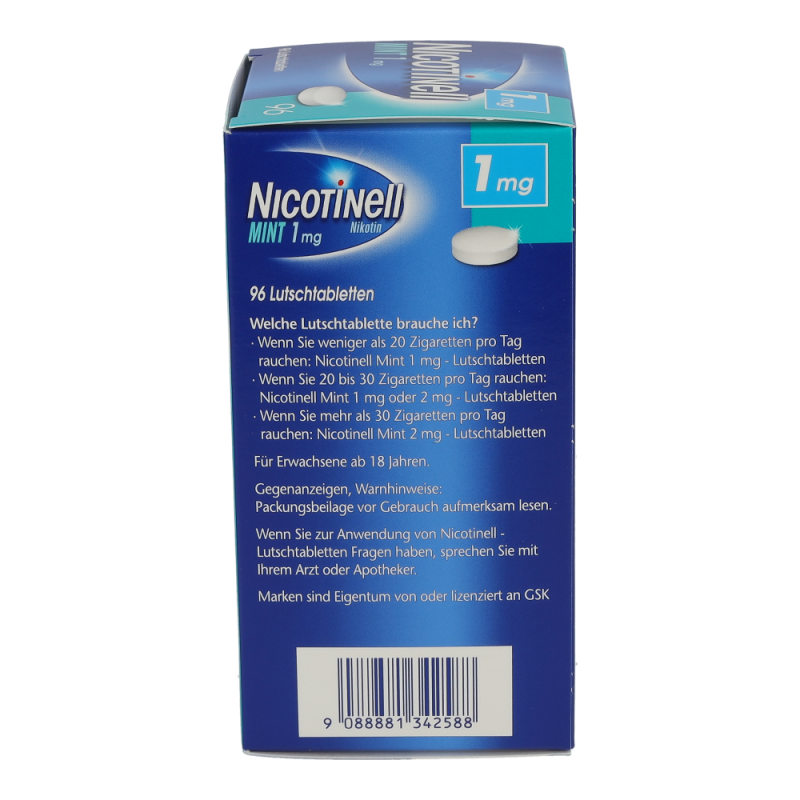 NICOTINELL® Mint 1 mg Lutschtabletten helfen das Rauchen aufzugeben, mildern die unangenehmen Entzugserscheinungen und dämpfen das Verlangen zu rauchen.