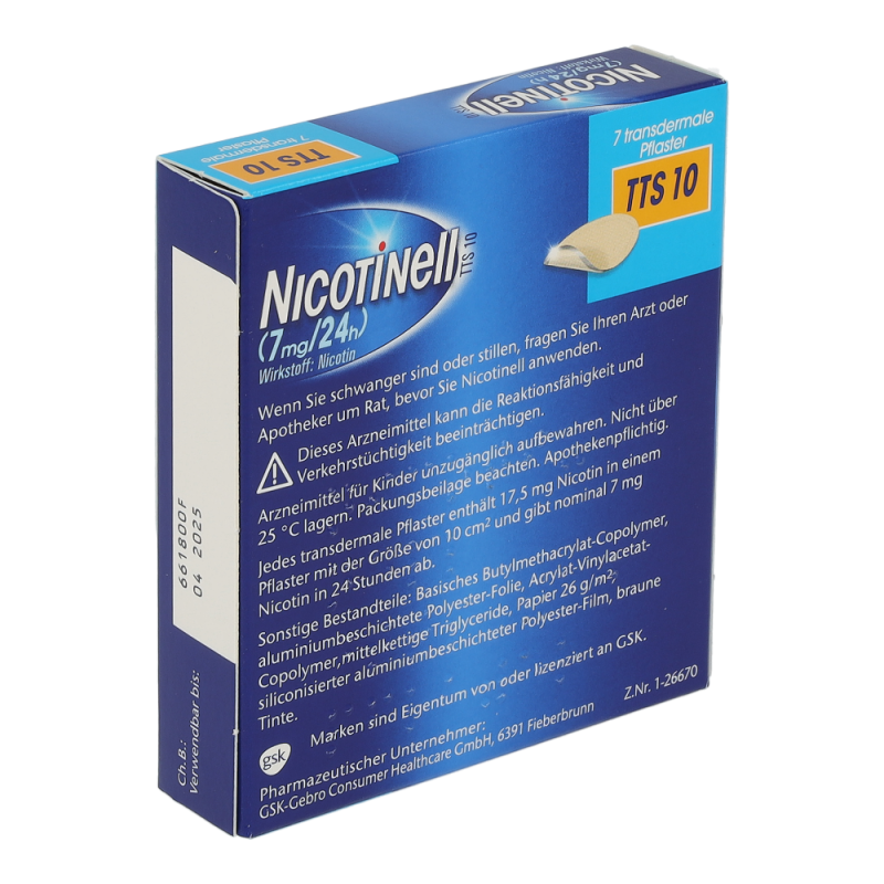 Vorsicht bei hämodynamisch instabilen Patienten, Diabetes, Schilddrüsenüberfunktion, Phäochromozytom, schweren Leber-, Nierenschäden, aktiven peptischen Ulzera, Krampfneigung, Dermatitis. Bei schweren Hautreaktionen Therapie unterbrechen. Cave Kinder (tödliche Vergiftungen möglich); Gebrauchte Pflaster kindersicher entsorgen. Vor MRT Untersuchung Pflaster entfernen (enthält Aluminium). Symptome der Raucherentwöhnung (Psyche, Vegetativum) berücksichtigen.