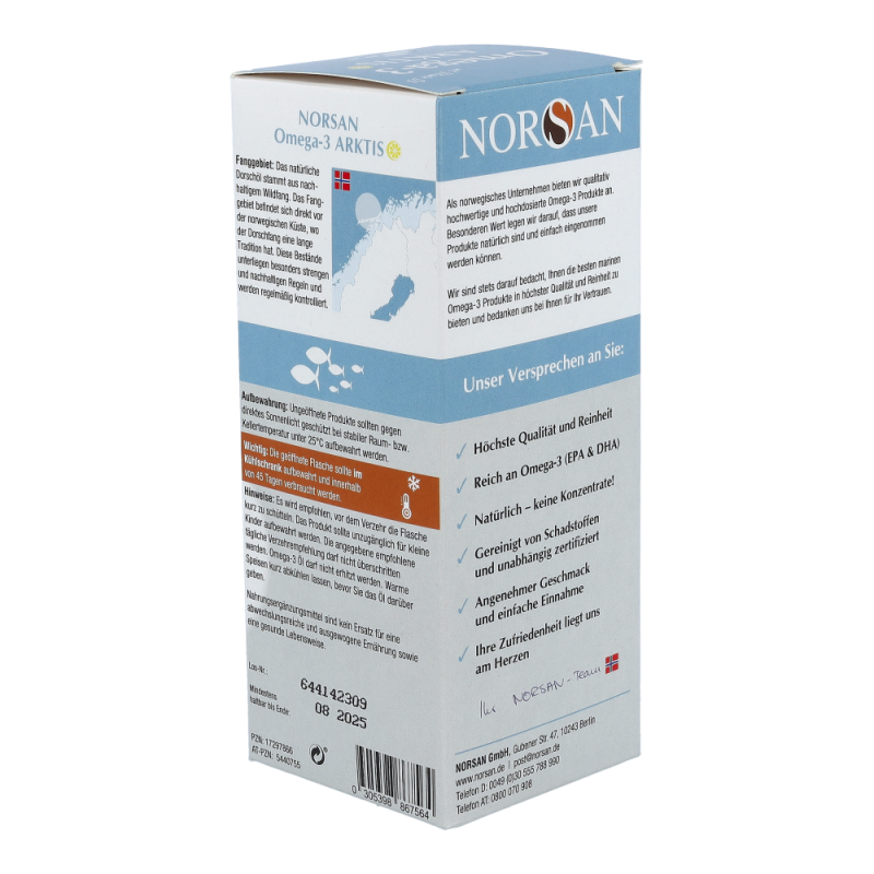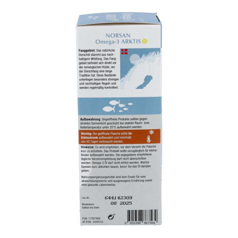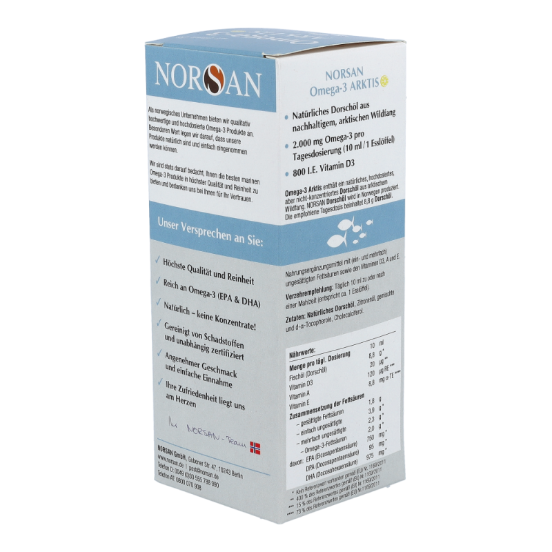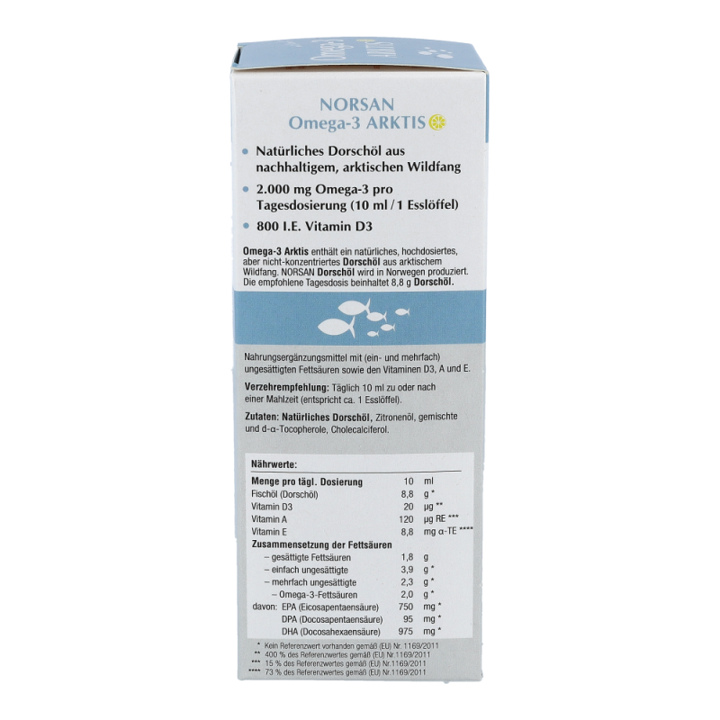 Omega-3 Arktis (200 ml) ist ein rein natürliches Dorschöl aus nachhaltiger arktischer Fischerei. Gut für Herz, Augen und Gehirn – dauerhaft preisreduziert bestellen!