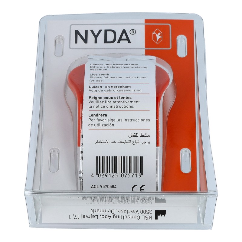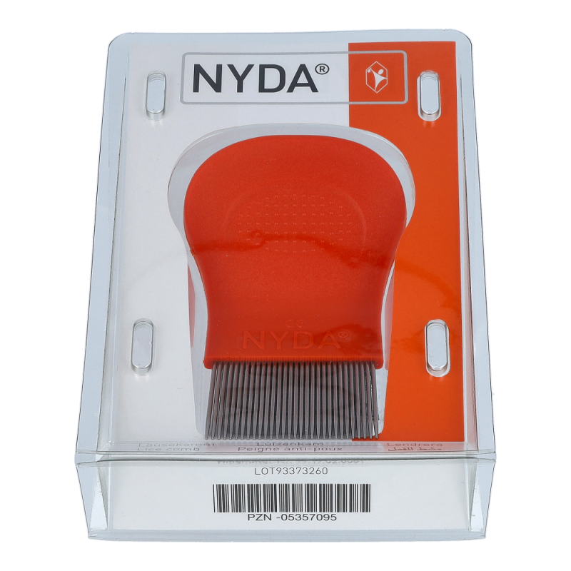 NYDA Läuse- und Nissenkamm mit besonders eng stehenden und langen Metallzinken, Kopfläuse und Larven werden damit erfasst.