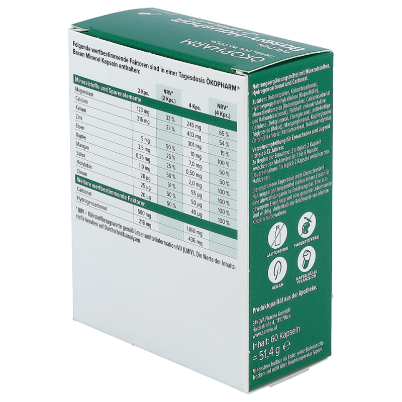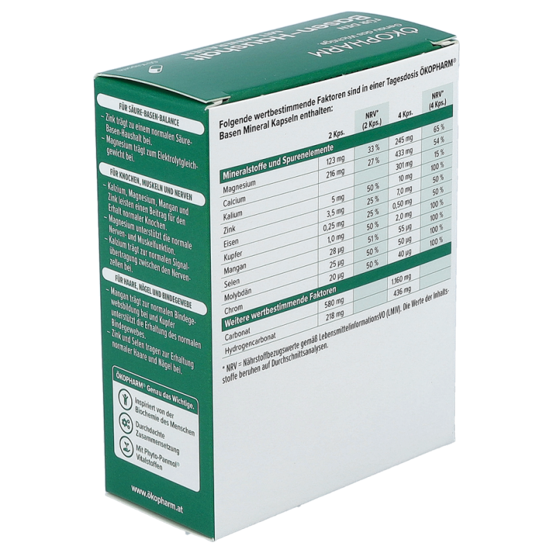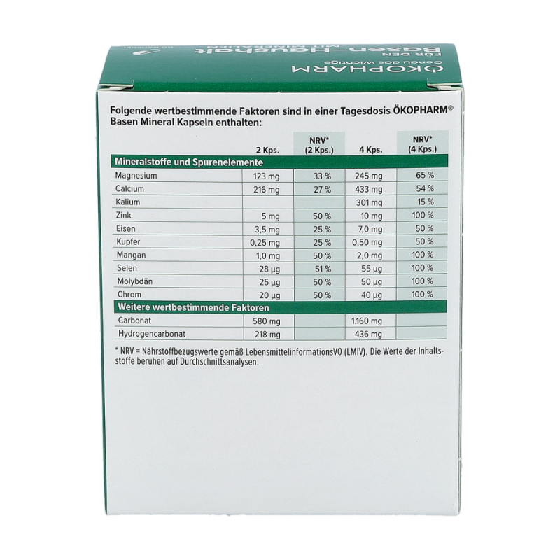 Das optimal abgestimmte Komplexpräparat BasoVital® Mineral von Ökopharm® Kapseln 60 Stk versorgt Sie mit basenspendenden Mineral stoffen und Spurenelementen für einen ausgewogenen Säure-Basen-Haushalt. Ökopharm BasoVital Mineral kann dabei gezielt als Kur angewendet, aber auch in einer geringeren Dosierung dauerhaft