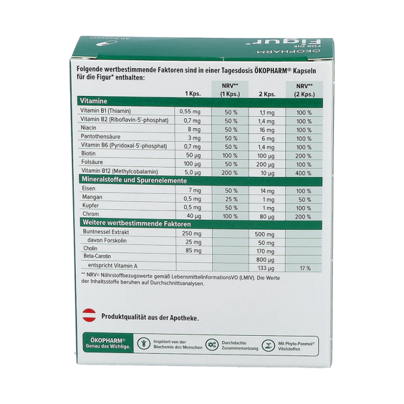 Der Ökopharm® Wirkkomplex in CarboSlim® Day Kapseln ist aus vielen Mikronährstoffen durchdacht zusammengesetzt. Er trägt zu einem ausgeglichenen Elektrolythaushalt bei, unterstützt den Stoffwechsel, die Verdauung und das Gewichtsmanagement. Mit Chrom, Vitamin B6 und Jod zur Unterstützung des Stoffwechsels, Magnesium für den ausgeglichenen Elektrolythaushalt und Spirulina-Algen zur Unterstützung der Verdauung.
