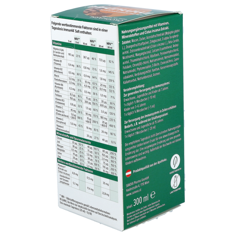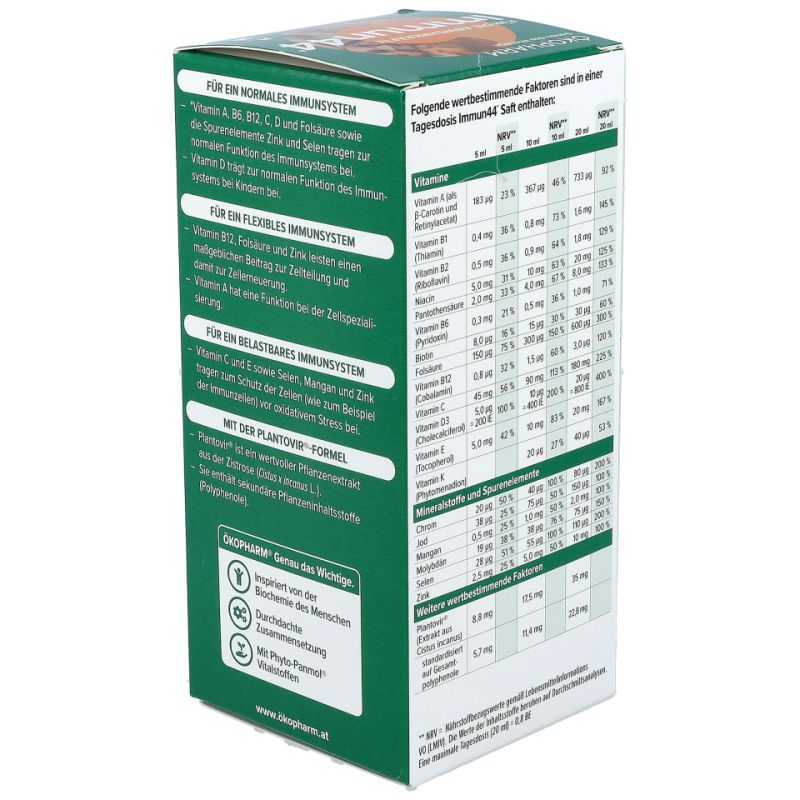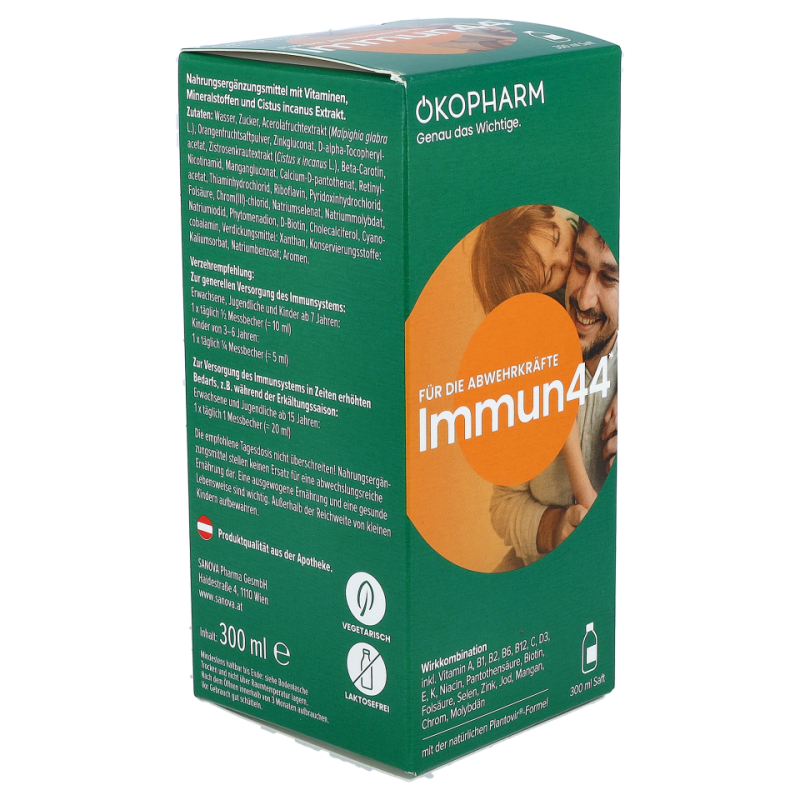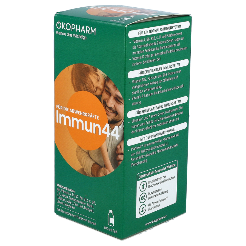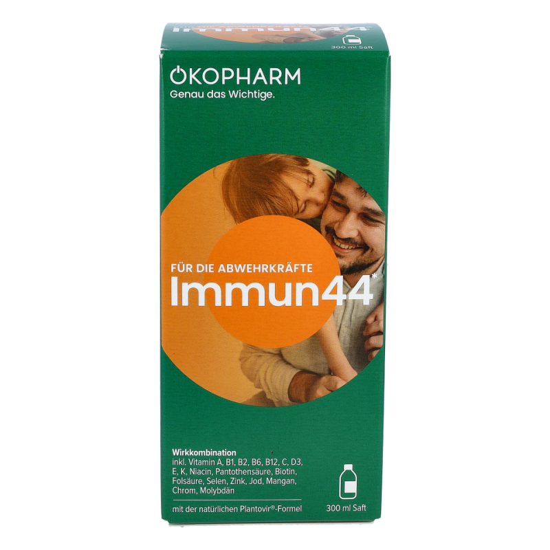 • Der Immun44® Saft von ÖKOPHARM® unterstützt mit Vitamin A, B6, B12, C, D, Folsäure, Zink und Selen bereits bei Kindern ab 3 Jahren und trägt zur normalen Funktion des Immunsystems bei.
