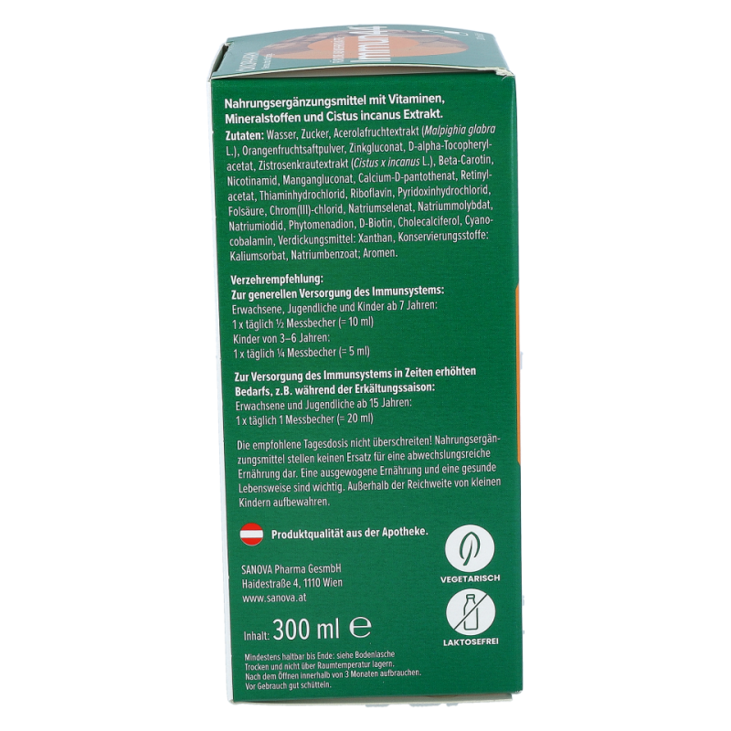 • Zur Stärkung des Immunsystems schützt der Saft vor oxidativem Stress mit Vitamin C, E, Selen, Mangan und Zink und enthält die Plantovir®-Formel sowie Phyto-Panmol® Vitamin C aus Acerolakirschen.