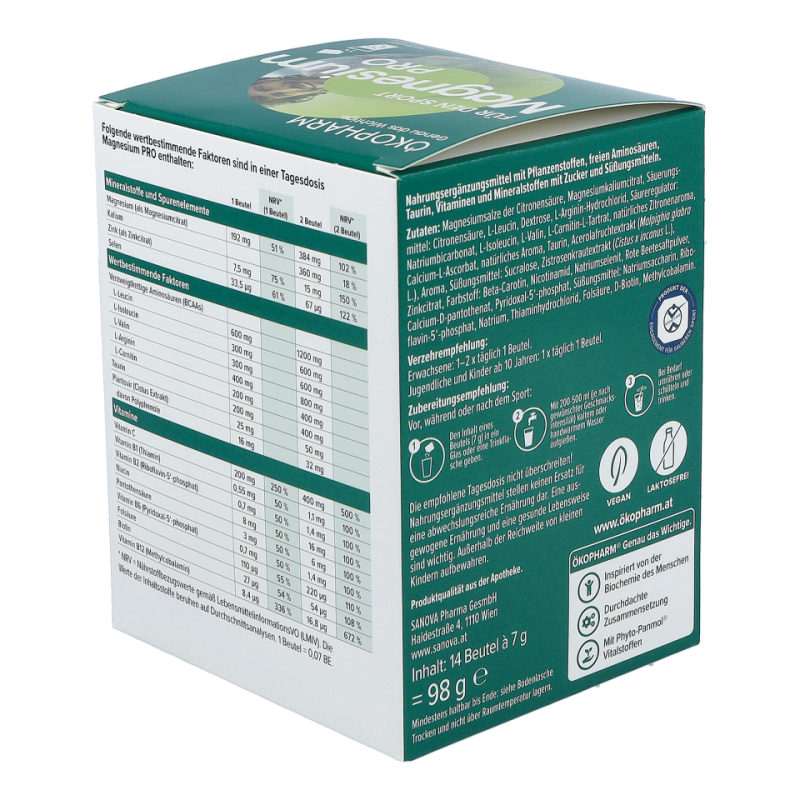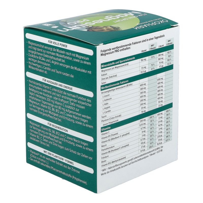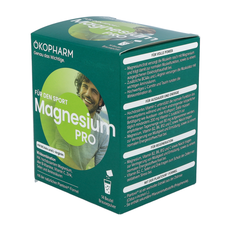 Der Ökopharm® Magnesium Pro Wirkkomplex ist Der durchdacht zusammengesetzte Wirkkomplex in Ökopharm44® Magnesium PRO schafft den gesunden Ausgleich. Mit den ausgewählten verzweigtkettigen Aminosäuren BCAA, L-Carnitin und L-Arginin sowie Magnesium und Kalium für aktive Muskeln.Mit hochdosiertem Vitamin C aus der Acerolakirsche für das aktive Immunsystem des Sportlers während und nach anstrengender körperlicher Belastung. Die Plantovir® Formel mit dem wertvollen Extrakt der Zistrose rundet den Ökopharm44® Wirkkomplex ab