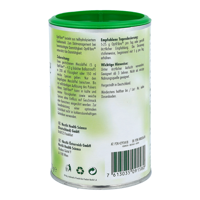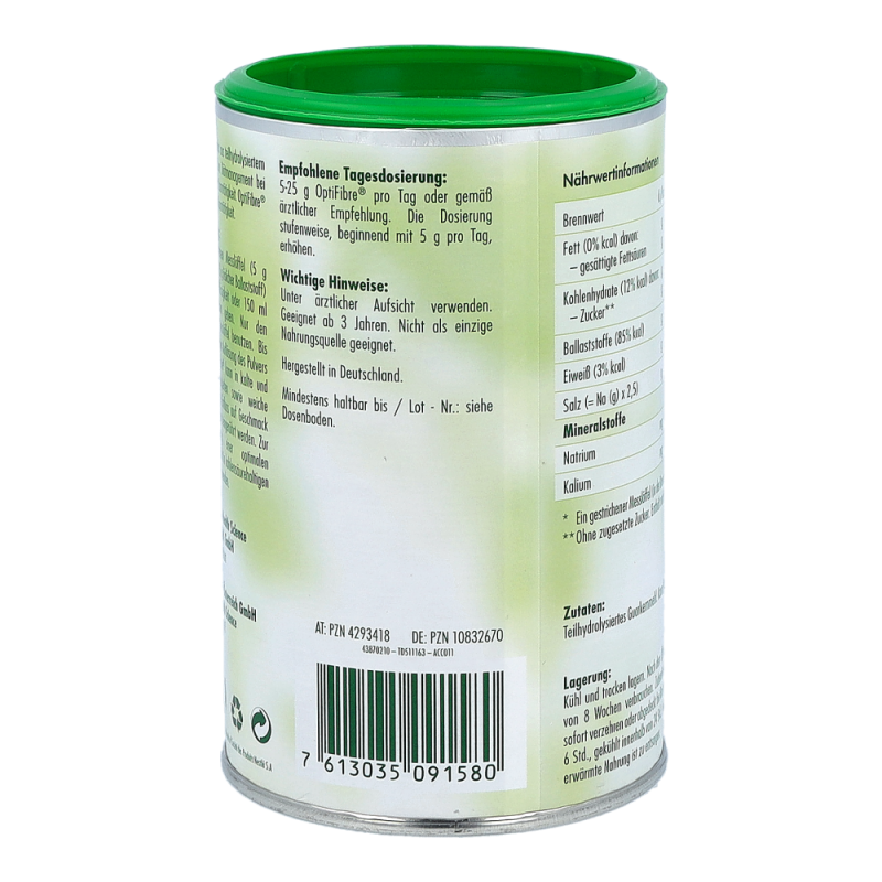 OptiFibre ist ein Lebensmittel für besondere medizinische Zwecke (bilanzierte Diät) zum Diätmanagement bei gestörter Funktion des Dickdarms zur Nährstoffresorption und -ausscheidung bei Diarrhö (Durchfall) und Obstipation (Verstopfung) – Jetzt schnell und ohne Lieferkosten* stark preisgesenkt bestellen!