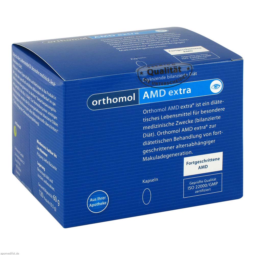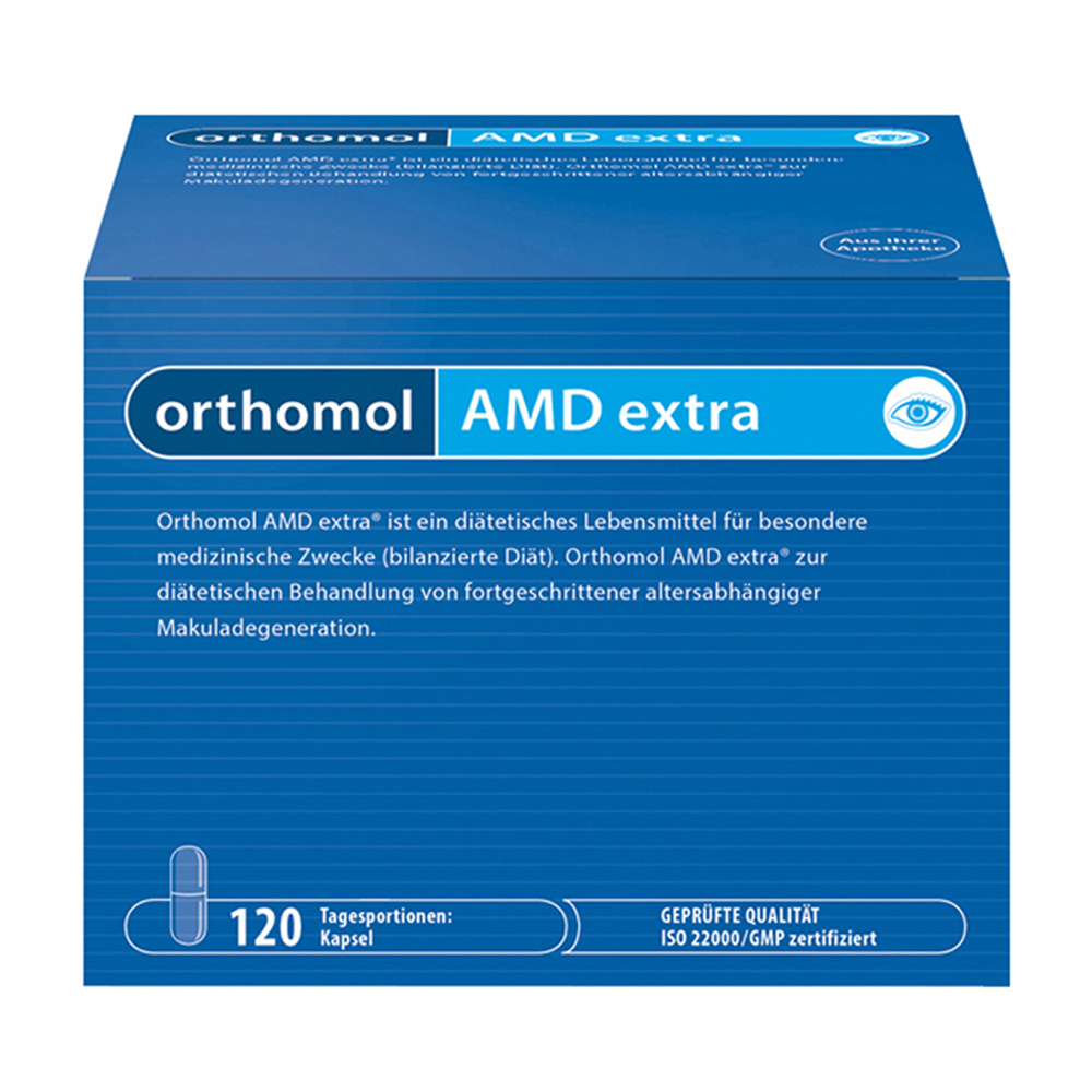 Orthomol AMD extra Kapseln wurden speziell für Patienten mit altersbedingter Makuladegeneration entwickelt. Die Kapseln liefern dem Körper eine spezielle Kombination unterschiedlicher Nährstoffe, die das Auge gezielt unterstützen.