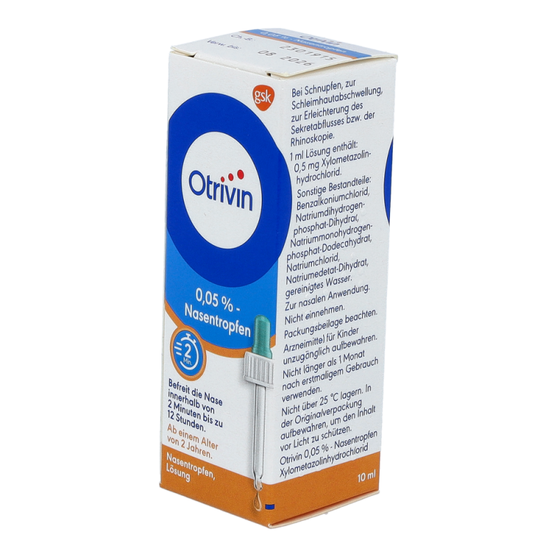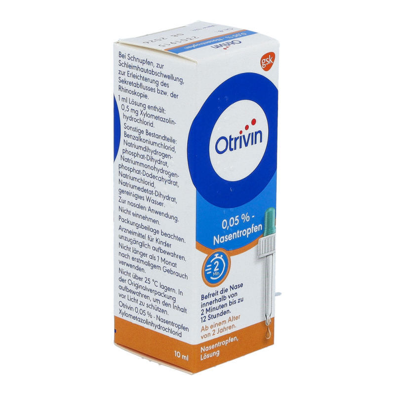 Otrivin® 0,05 % Nasentropfen wirken abschwellend auf die Nasenschleimhaut und den angrenzenden Bereich des Rachenraumes. Das ermöglicht bei Schnupfen wieder ein freieres Atmen durch die Nase.