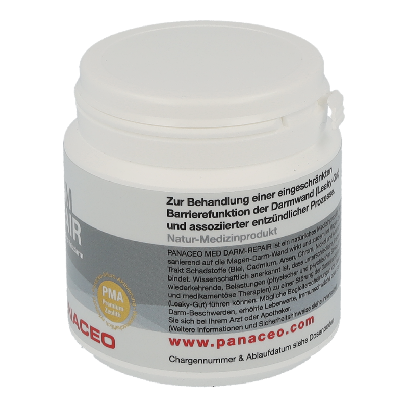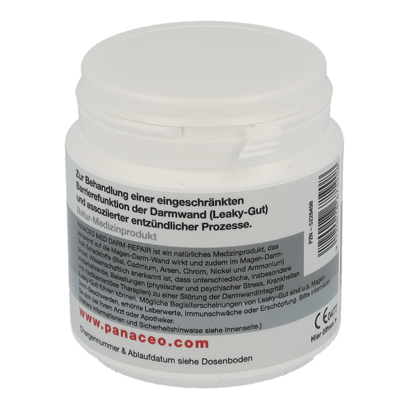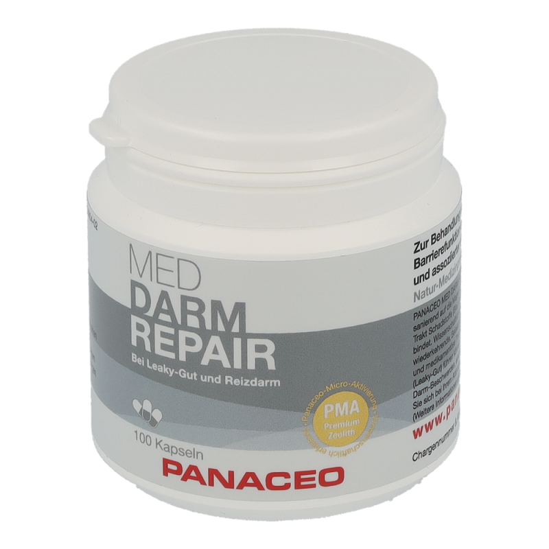 PANACEO MED Darm-Repair Kapseln mindert Leaky-Gut Beschwerden, repariert die Darmwand, lindert dadurch Entzündungen und kann die Wirkung von Probiotika verstärken. Es schützt außerdem Darm & Immunsystem und entlastet Organe durch Bindung und Ausleitung von Schwermetallen (Blei, Cadmium, Arsen, Chrom und Nickel) aus dem Magen-Darm-Trakt. Halten Sie Ihren Darm gesund, denn ein gesunder Darm fördert das Wohlbefinden des gesamten Körpers.