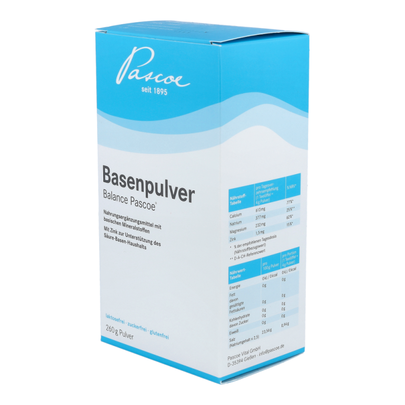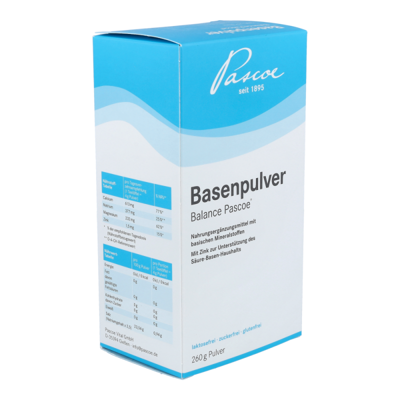 Das Basenpulver Balance von Pascoe Vital ist ein Nahrungsergänzungsmittel mit Zink zur Unterstützung des Säure-Base-Haushaltes. Zink dient der Erhaltung schöner Haare, Nägel und Haut und unterstützt die Erhaltung normaler Sehrkraft. Weiterhin wirkt sich Zink positiv auf die Funktionsweise des Immunsystems aus und hilft beim Schutz der Zellen vor oxidativem Stress. Das im Pulver ebenfalls enthaltene Calcium, Magnesium und Kalium werden für den Energiestoffwechsel, sowie für gesunde Muskeln und Knochen benötigt..