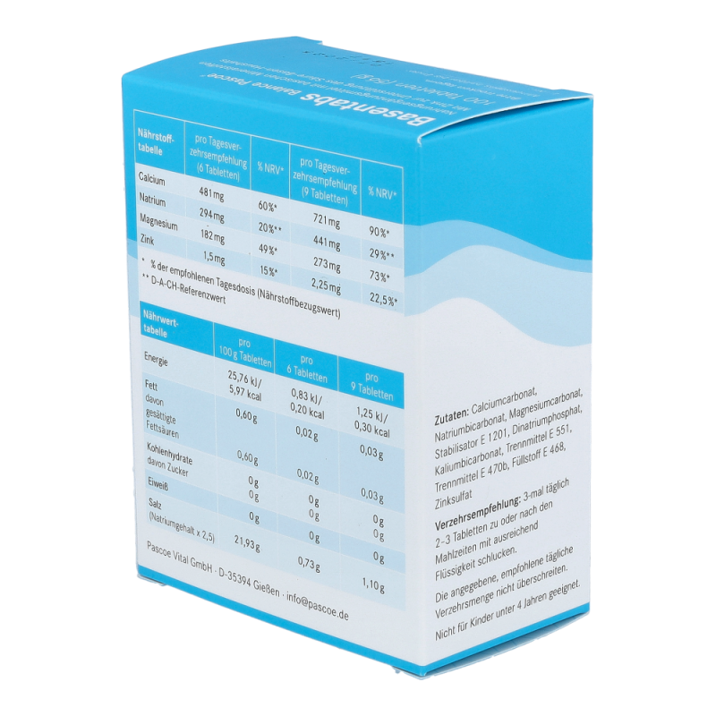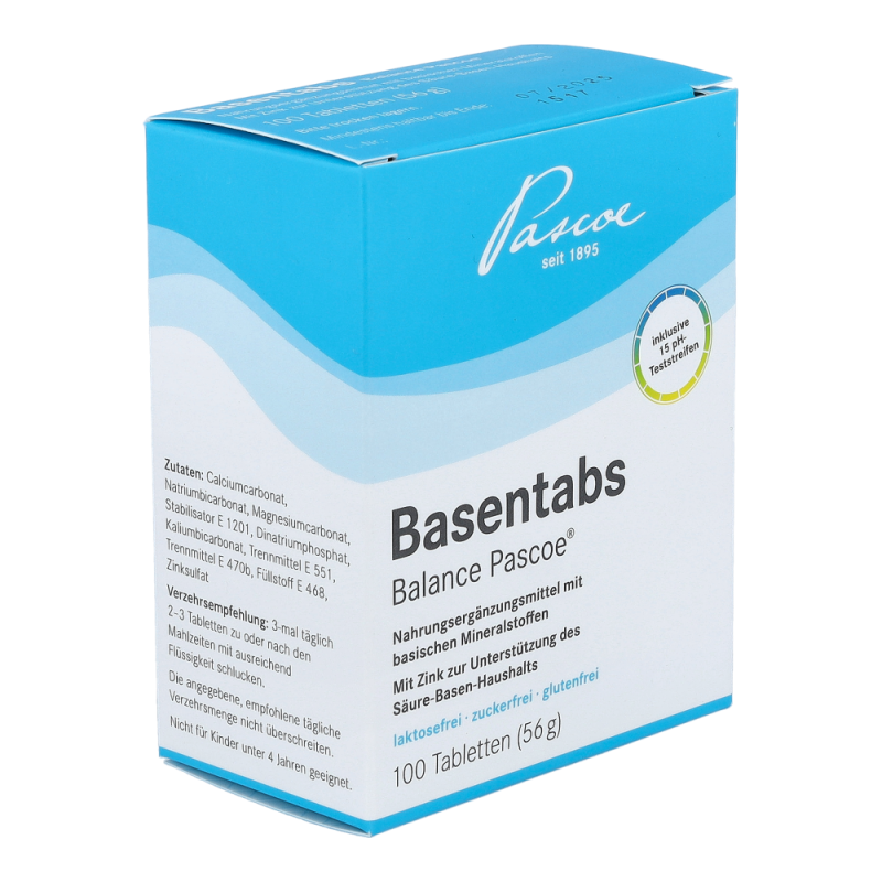 Basentabs pH-balance von Pascoe ist ein Nahrungsergänzungsmittel mit basischen Mineralstoffen und mit Zink zur Unterstützung des Säure-Basen-Haushalts. Außerdem hilft Zink, die Zellen vor oxidativem Stress zu schützen. Die Basentabs unterstützen Sie mit Zink, Calcium, Magnesium und Kalium.
