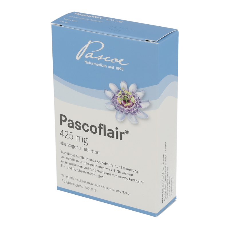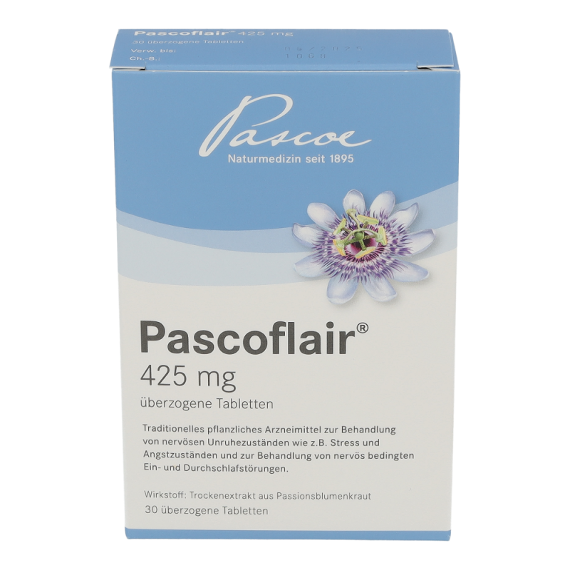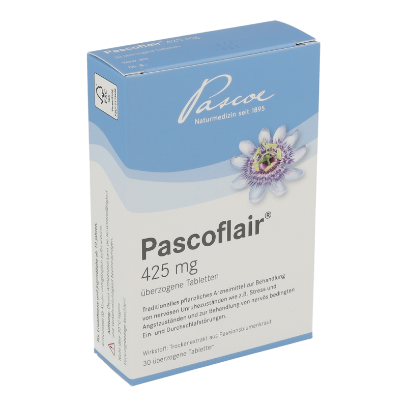 Pascoflair® 425mg Tabletten zur Behandlung von nervösen Unruhezuständen wie z. B. Stress und Angstzuständen, sowie zur Behandlung von nervös bedingten Ein- und Durchschlafstörungen.
