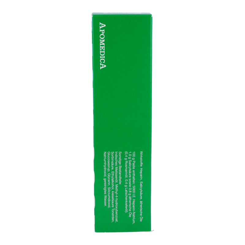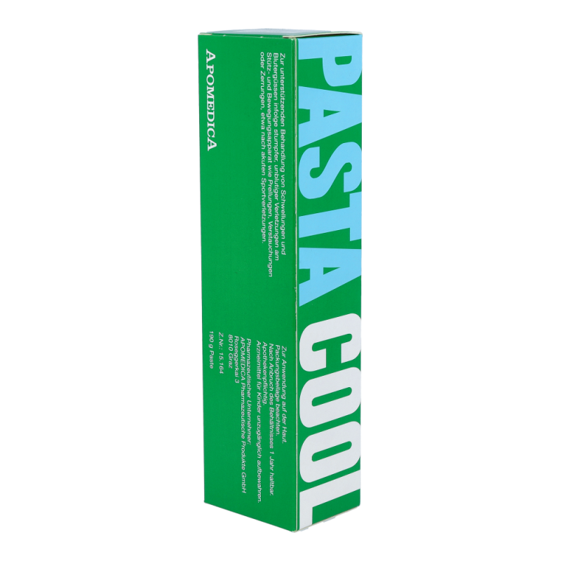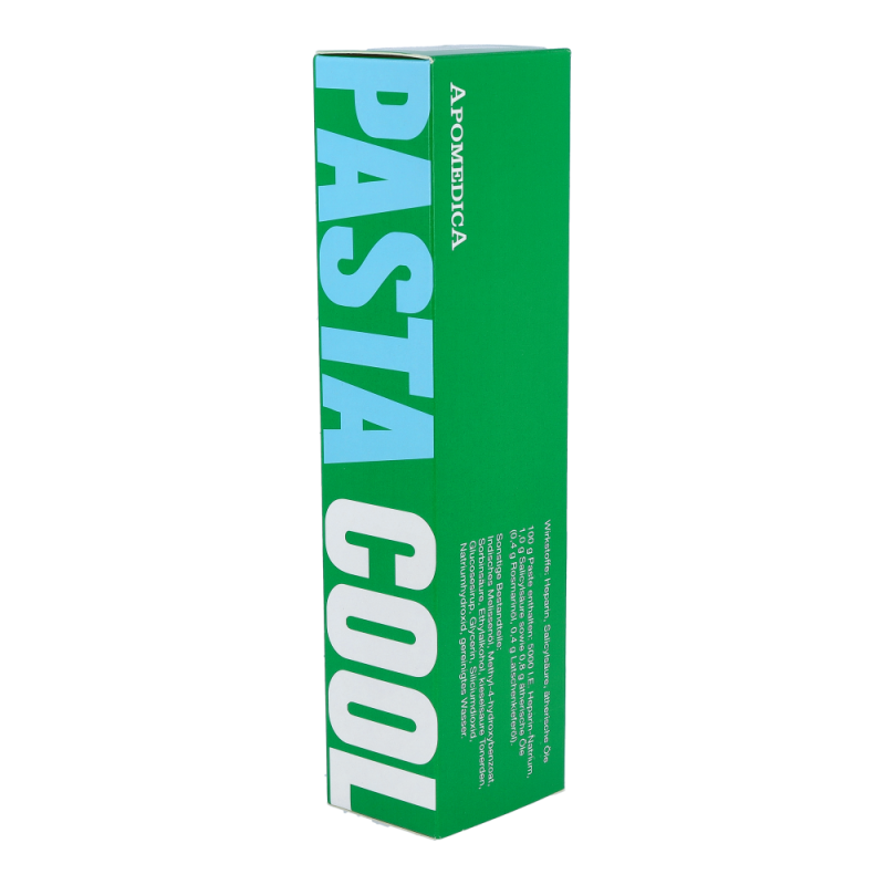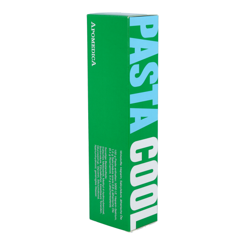 Pasta Cool ist eine abschwellende, entzündungshemmende und schmerzlindernde Umschlagpaste. Sie enthält als Wirkstoffe Heparin und Salicylsäure, sowie ätherische Öle (Rosmarinöl, Latschenkieferöl) in einer Grundlage aus kieselsaurer Tonerde. Zusammen fördern sie die Rückbildung von Blutergüssen und entzündlichen Schwellungen, Spannungsgefühl und Schmerzen bzw. erhöhte Druckempfindlichkeit lassen nach, und die damit verbundene Bewegungseinschränkung geht zurück – jetzt stark preisreduziert bestellen!