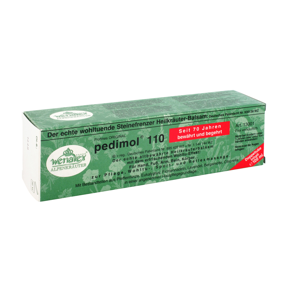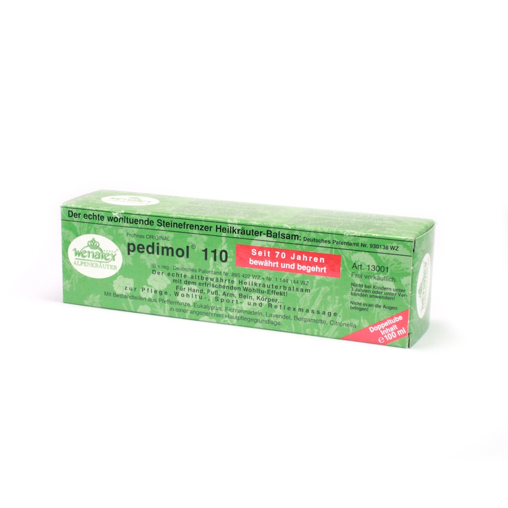 pedimol 110 Kräuter Balsam hilft beim Massieren von verkrampfter, überanstrengender Muskulatur und lässt die Gelenke freier werden. Wirkt entspannend auf Körper, Seele und Geist