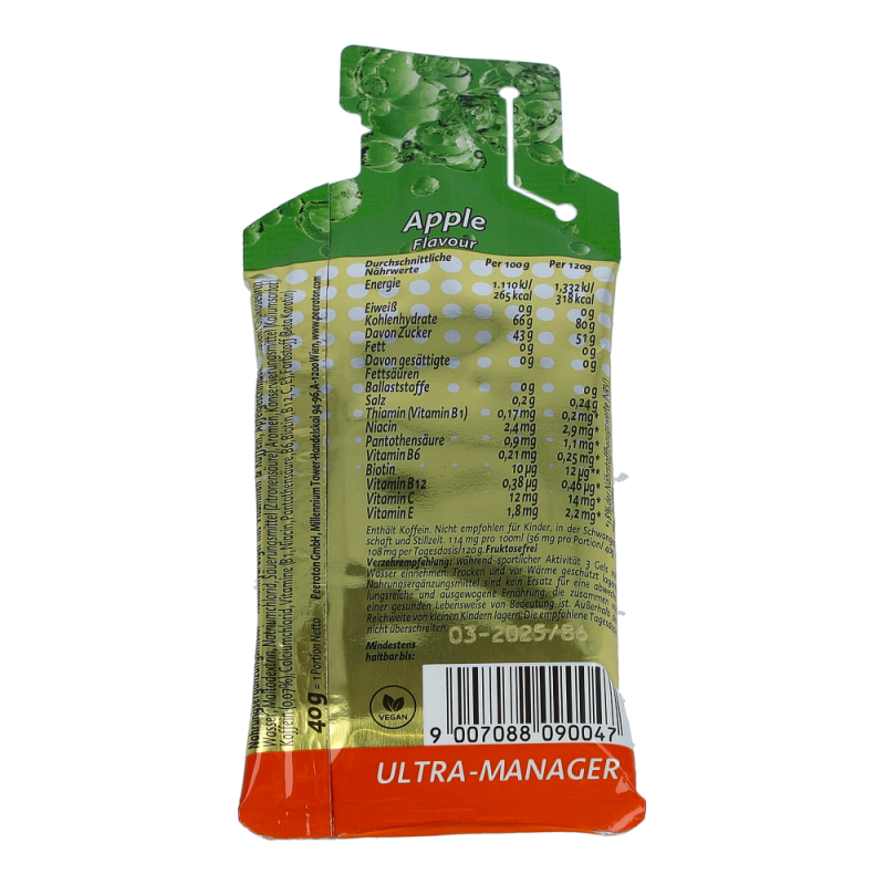 Das Energizer Ultra-Gel ist eine optimal abgestimmte Kohlenhydratmischung mit Magnesium und Vitaminen. Es liefert sofort verfügbare Energie und gewährleistet extreme Ausdauer.