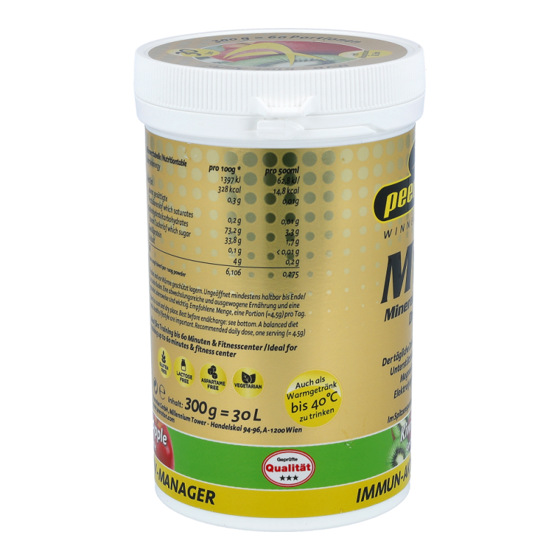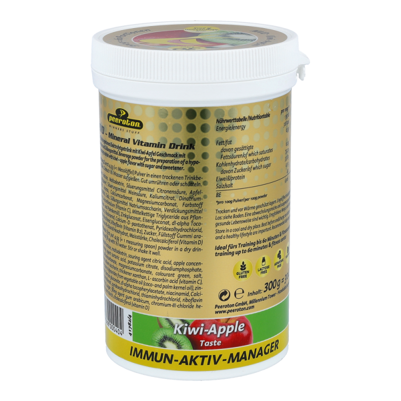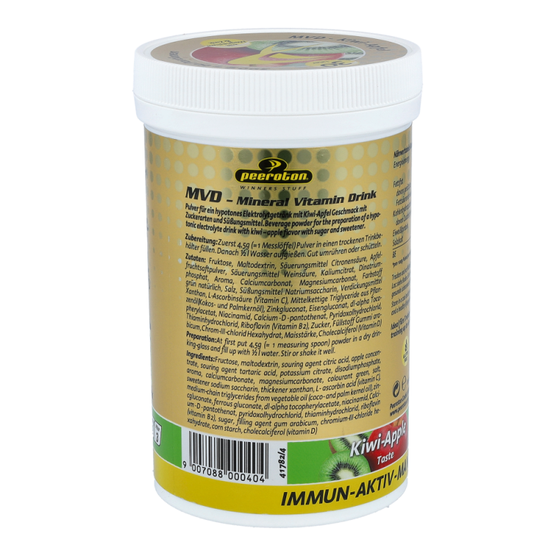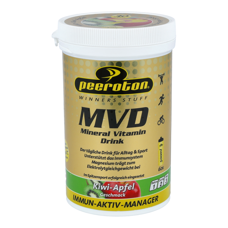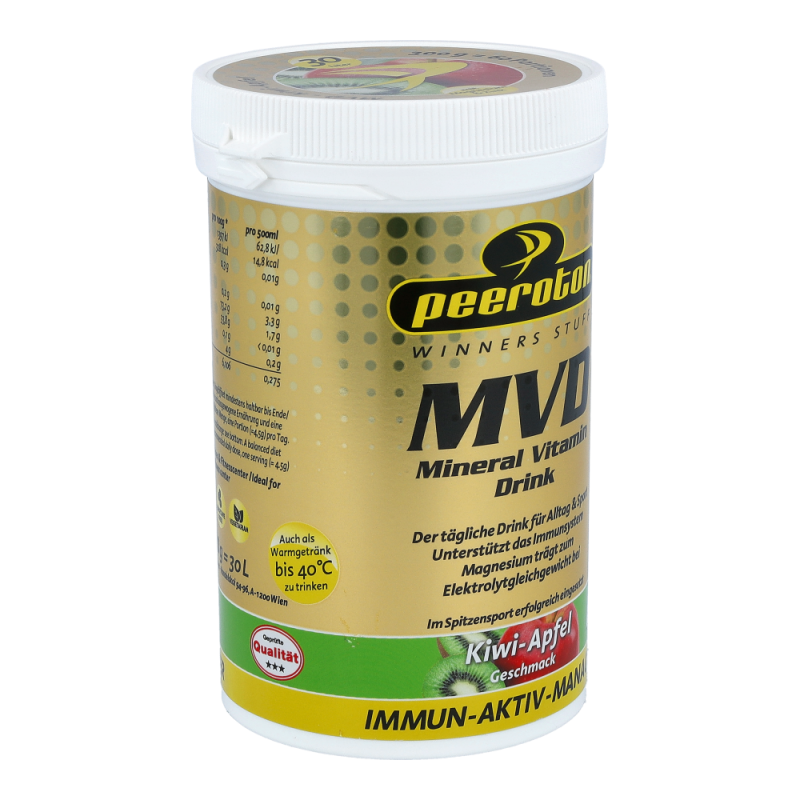 Peeroton Mineral Vitamin Drink ergänzt die Zufuhr der essentiellen Mineralstoffe und Vitamine, deren Bedarf durch Sport oder Stressbelastungen des Alltags erhöht ist. Durch die Beifügung von Zink wird eine Stärkung des Immunsystems bewirkt, Chrom verbessert die Spaltung von Kohlenhydraten und Proteinen.
