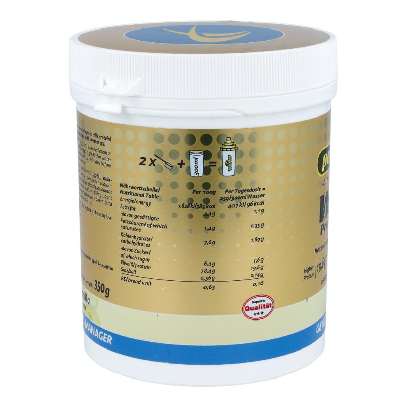 Die hochwertige Eiweißquelle fördert den Muskelaufbau und eine schnellere Regeneration nach Verletzungen. Wheyprotein zeichnet sich durch eine rasche Resorption im Magen-Darm-Trakt aus. Dadurch kommt es zu einem beschleunigten Einstrom von Aminosäuren ins Blut und einer optimalen Proteinsynthese mit anabolem (muskelaufbauendem) Charakter. Ebenso ergänzt dieses Produkt den erhöhten Eiweißbedarf nach physischen Anstrengungen und bei altersbedingtem Eiweißabbau.